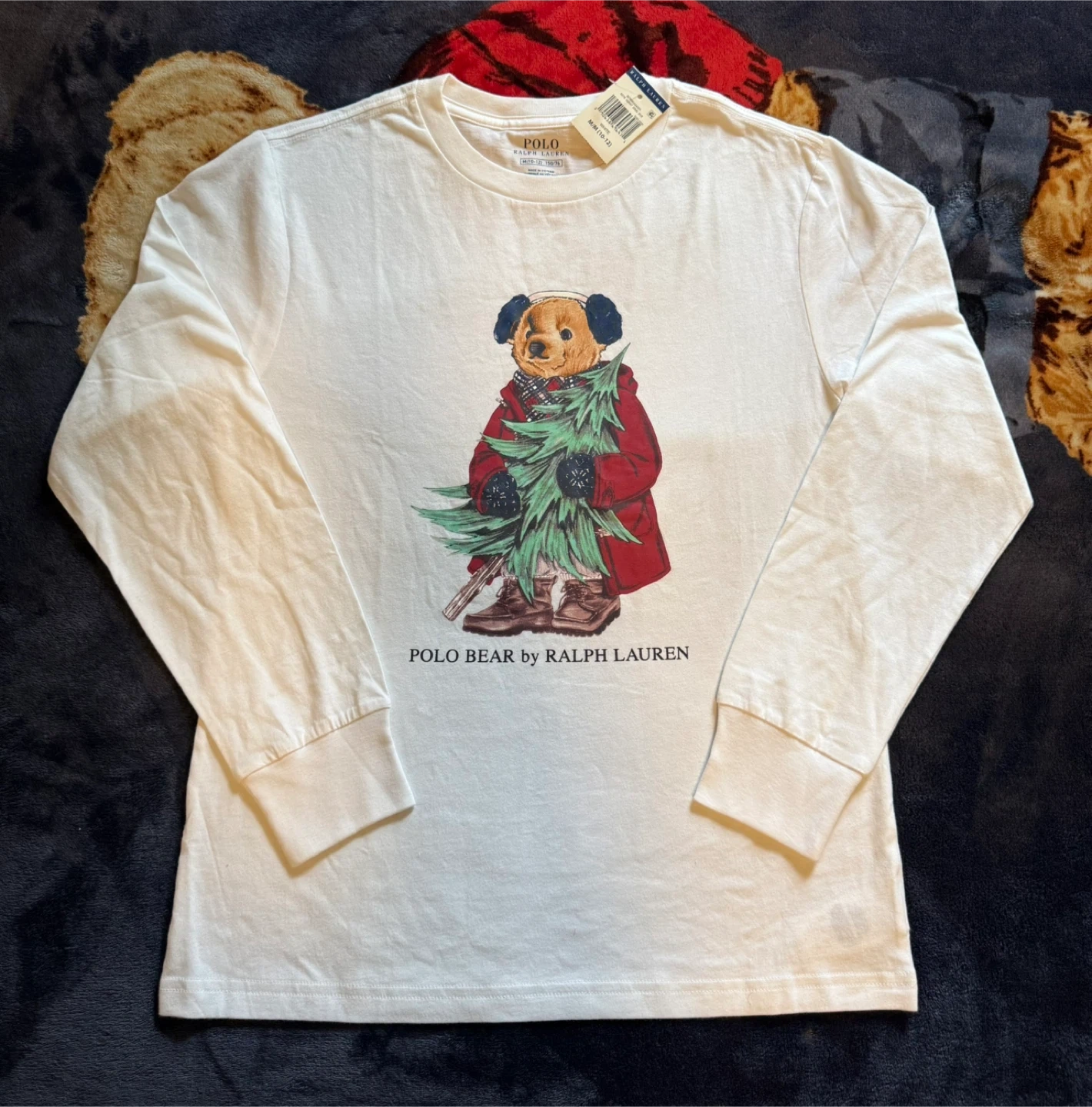 Selling a Polo Ralph Lauren long-sleeve tee featuring the iconic Polo Bear! It's a size M (10-12). The design features the Polo Bear with a Christmas tree. Perfect for the holidays or any time you want to add a touch of classic style to your outfit