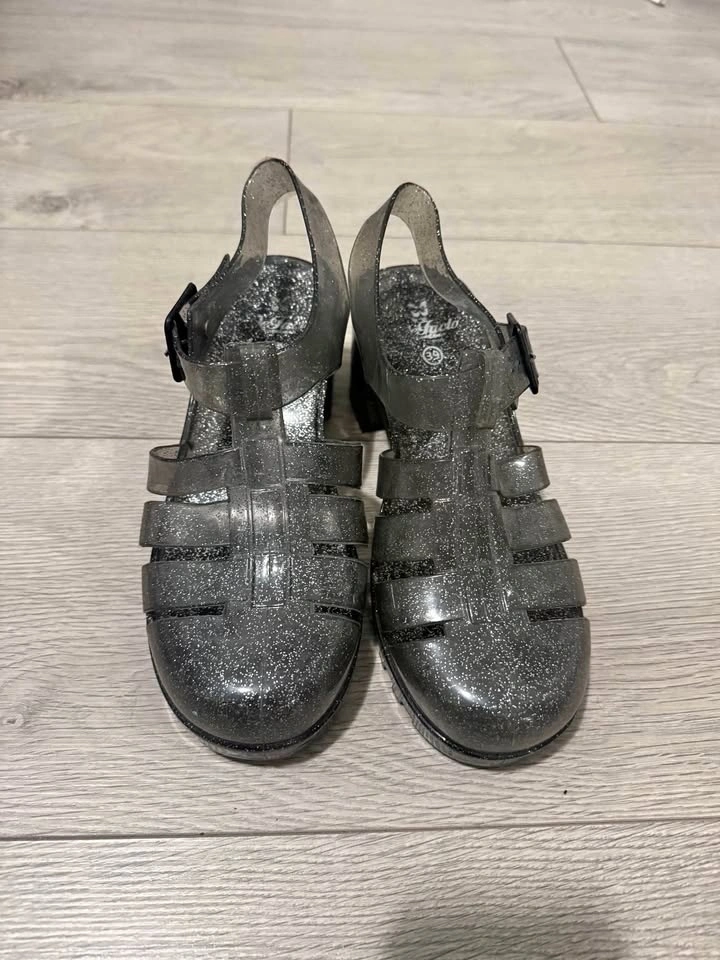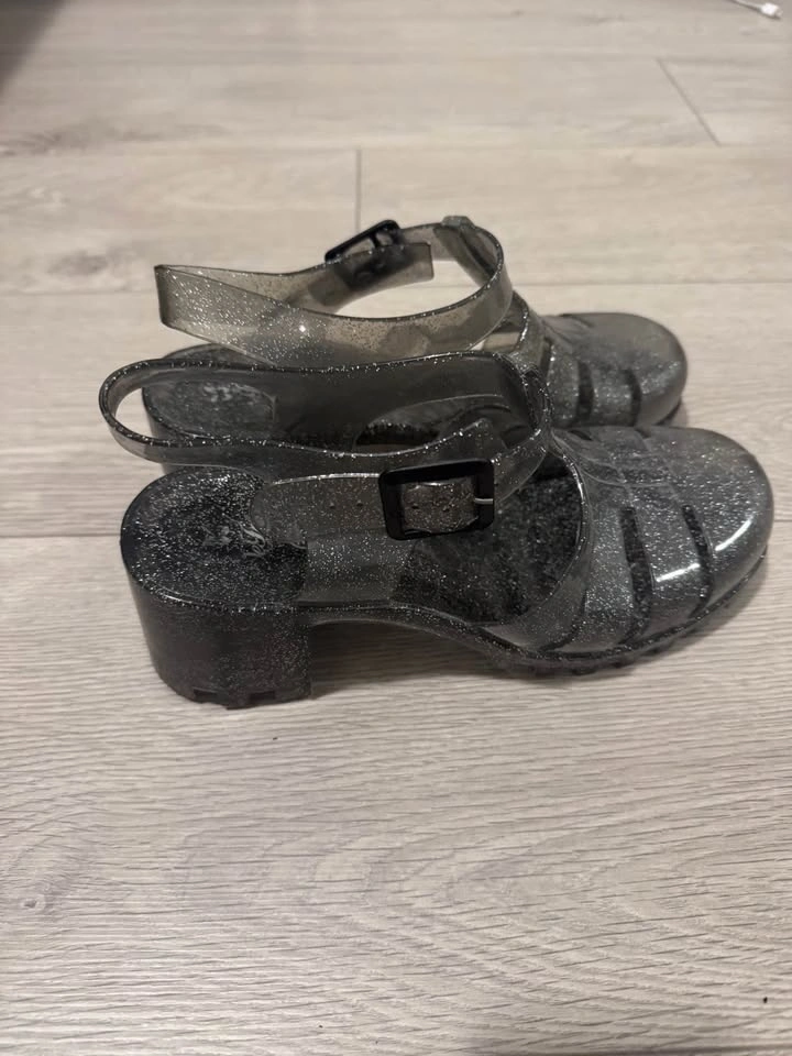 Buy & SellGlittery Jelly Sandals Size 39Glittery Jelly Sandals Size 39$25Sparkly Gaclo jelly sandals size 39. These are super cute, with a little block heel. Glittery black/dark gray color.WHERE TO MEETCheck LocationView MapSELLERShadiTrafalgar100 reviews0 chats·0 favorites·1 viewsSEND CHAT TO SELLERHi Shadi! I’m interested in your listing.Hi Shadi! I’m interested in your listing.Get the Karrot app to chatSign In to chat