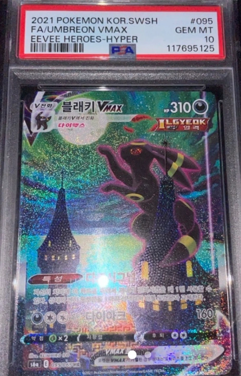 This is a 2021 Korean Pokemon card featuring Umbreon VMAX, labelled as EEVEE HEROES HYPER. It's a #095 card graded GEM MT 10.