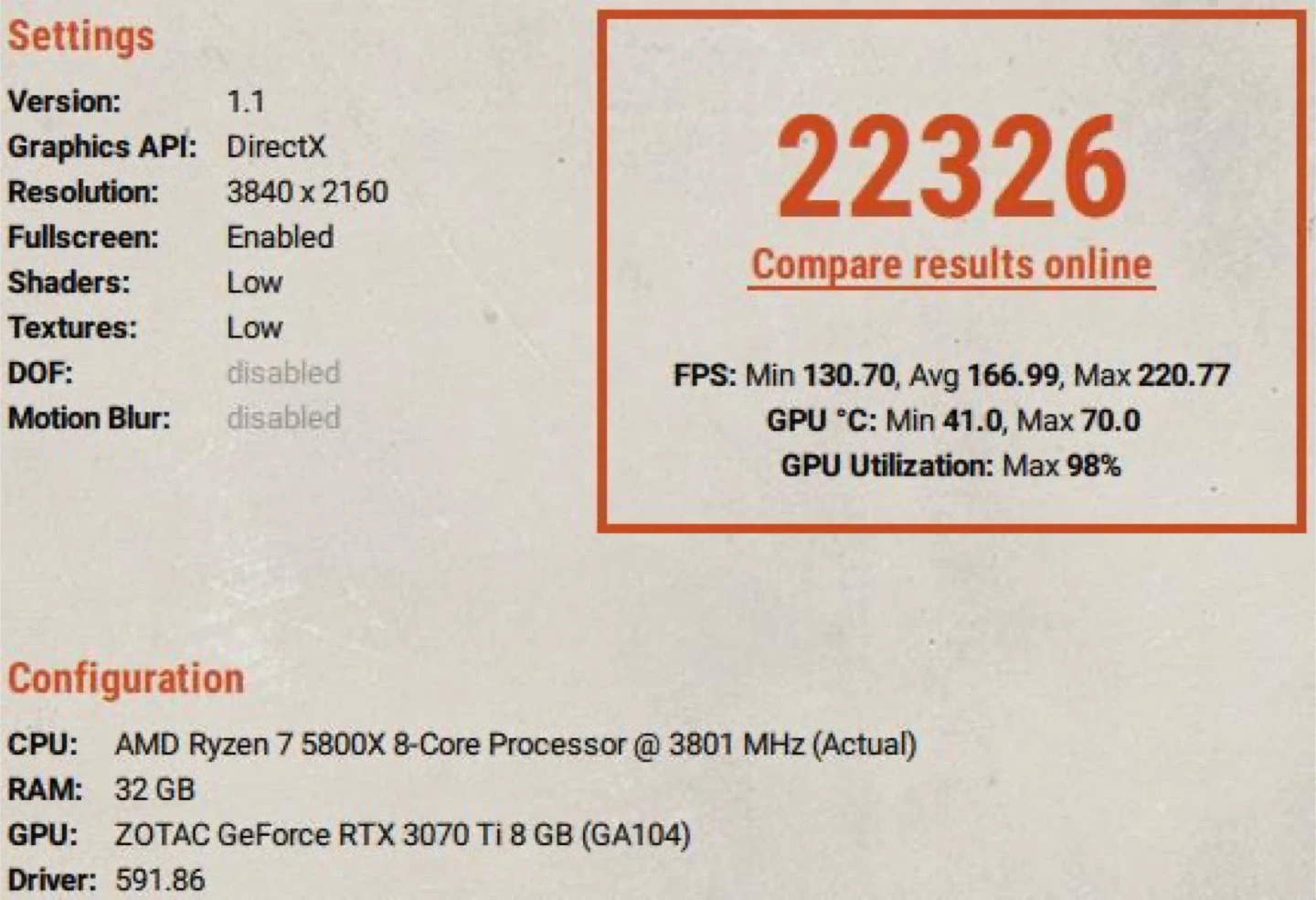 * 4K:Â 166 FPS Average (Hits up to 220 FPS)