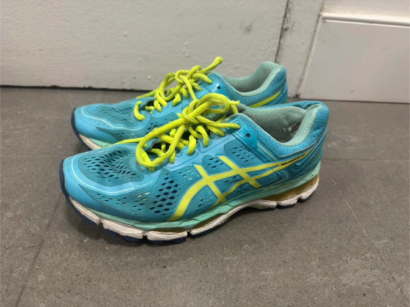 Selling a pair of ASICS GEL-Kayano 22 running shoes. Used quite a bit, but still has life in them. In fair condition.
