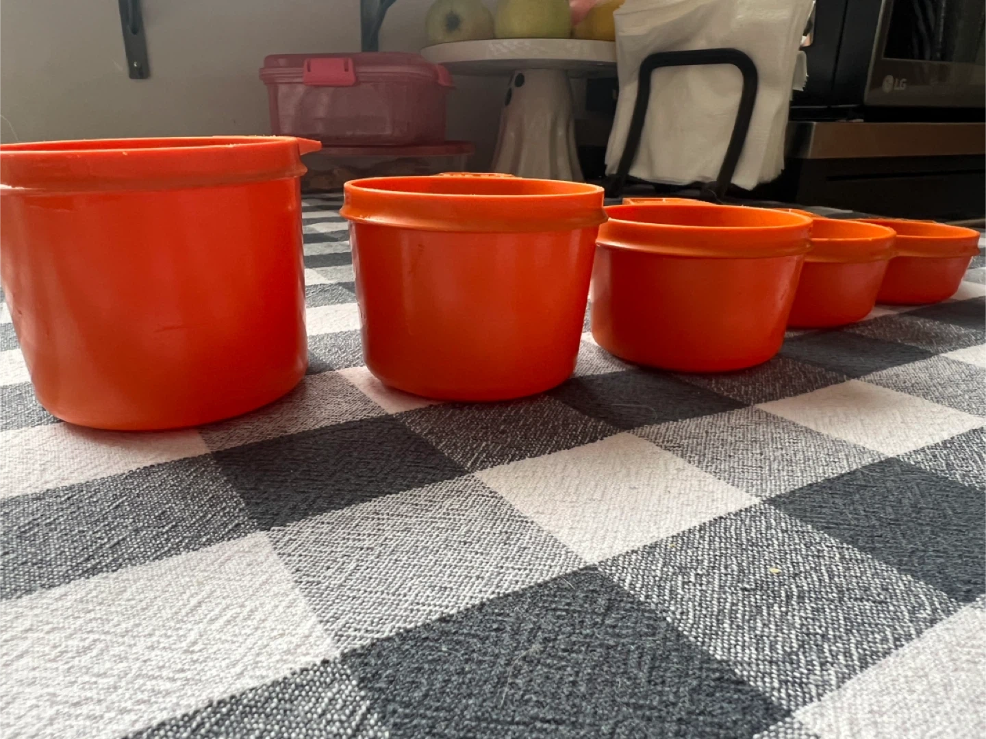 Set of 5 VINTAGE Orange Plastic Measuring Cups