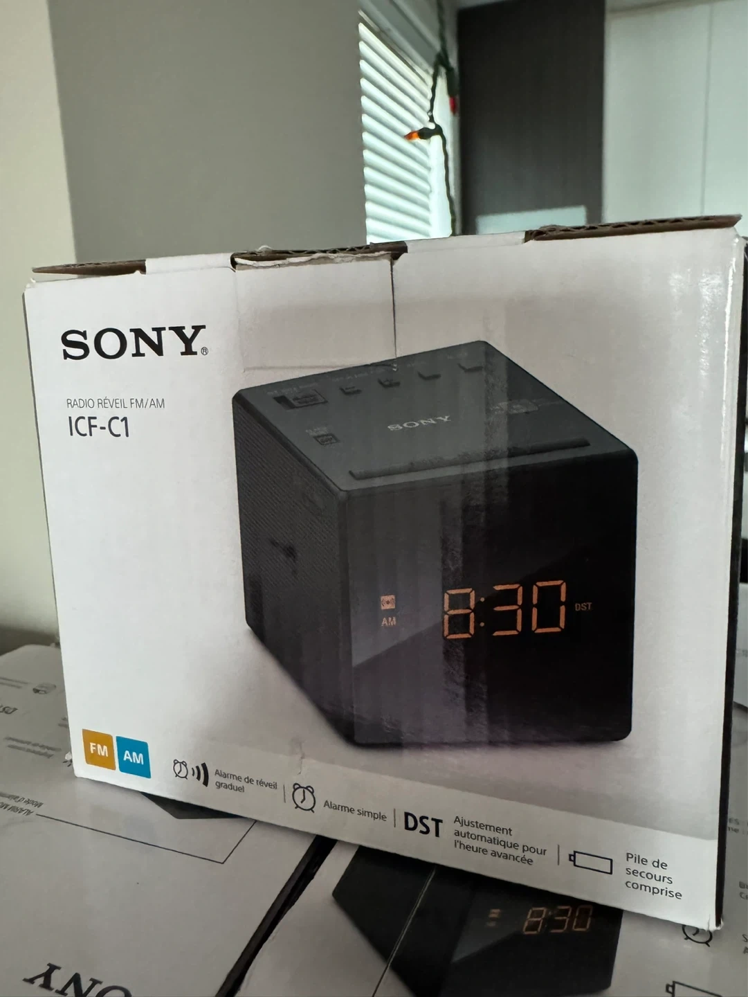 Buy & SellSONY ICF-C1 FM/AM Clock RadioSONY ICF-C1 FM/AM Clock Radio$25This SONY ICF-C1 clock radio features FM/AM tuning. It has a gradual wake alarm and DST adjustment. Includes back-up battery. Open box but newConditionLike newBrandSONYWHERE TO MEETBathurst and Lawrence plazaView MapSELLERverifiedJacyNortown1527 reviews0 chats·0 favorites·2 viewsSEND CHAT TO SELLERHi Jacy! I’m interested in your listing.Hi Jacy! I’m interested in your listing.Get the Karrot app to chatSign In to chat