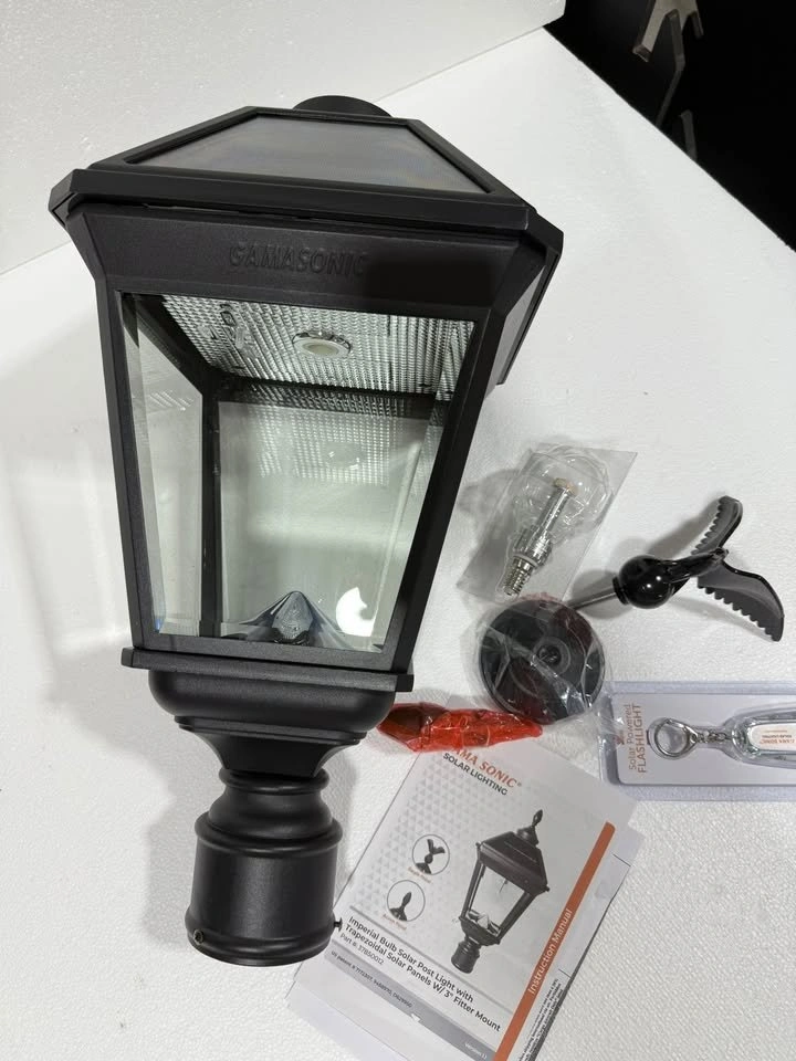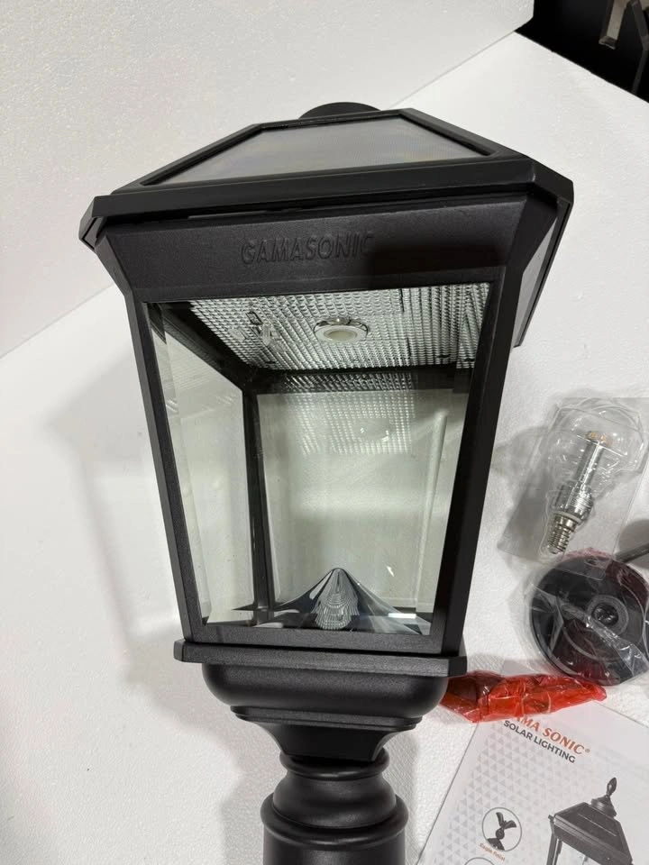 Upgrade your outdoor lighting with this brand new, open-box Gama Sonic solar lamp post light!