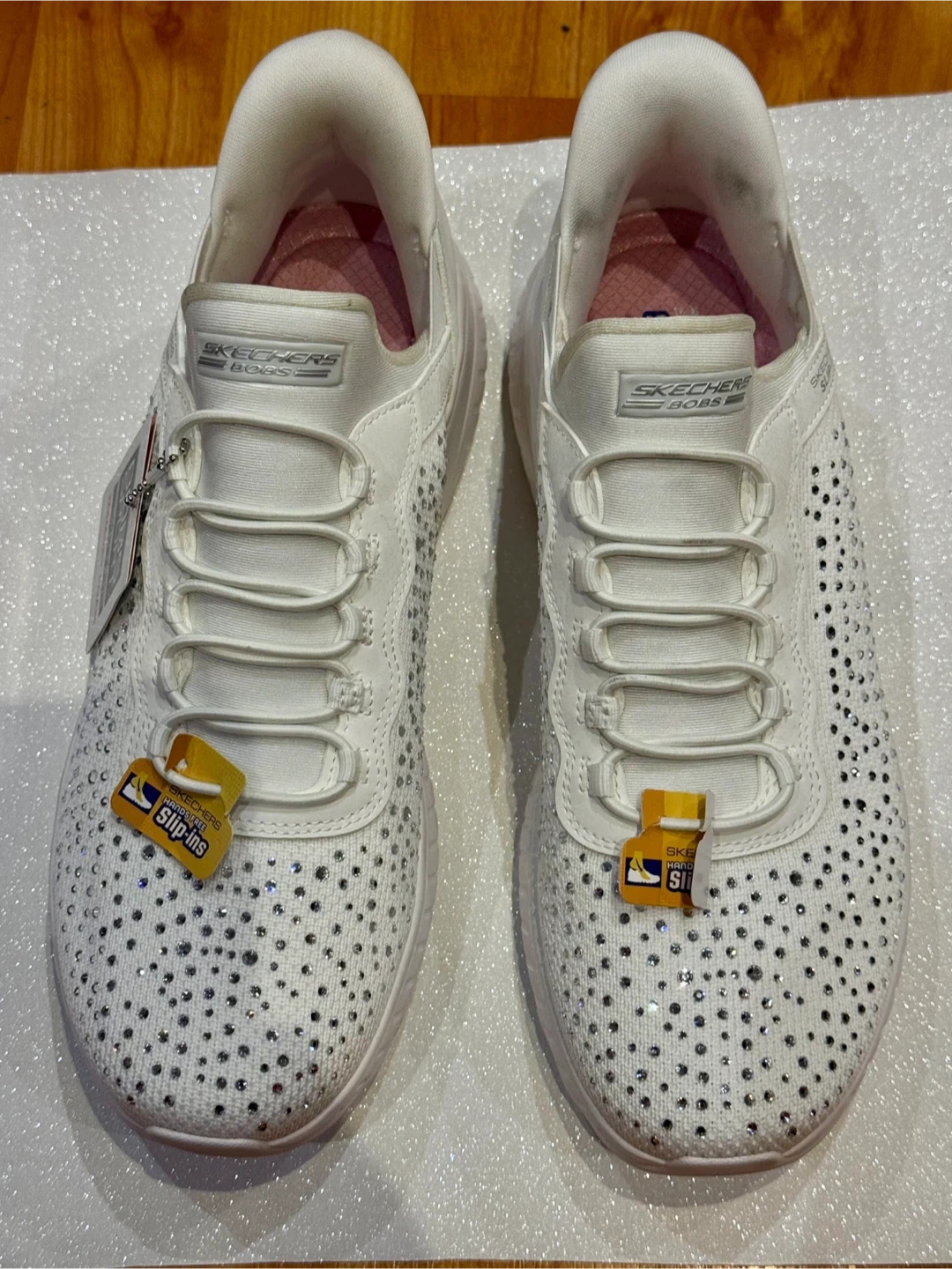 Selling a pair of women's Skechers BOBS Slip-ins. These are in great condition and ready for a new owner! They feature a comfortable slip-in design and are adorned with stylish details. Perfect for everyday wear!