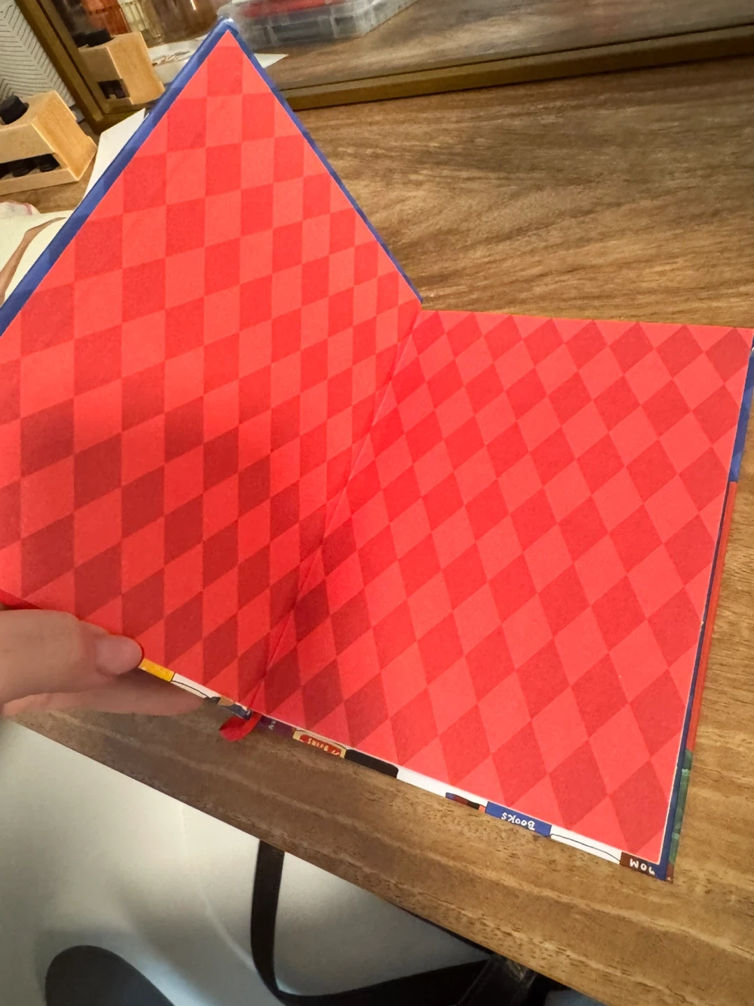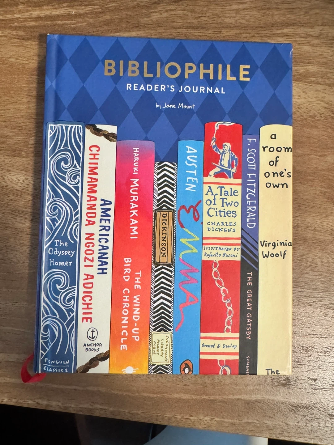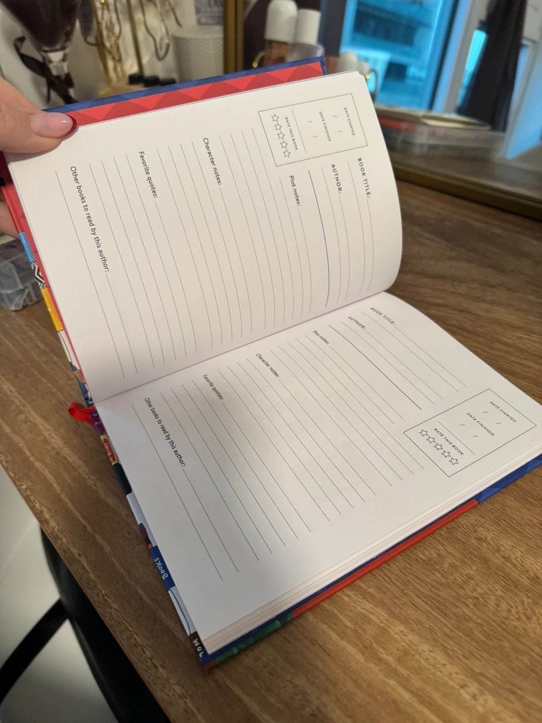 This is a Bibliophile Reader's Journal designed by Jane Mount. It's perfect for logging books you've read, including space for author, title, character notes, and favourite quotes. The inside features a fun red and blue checkered pattern.