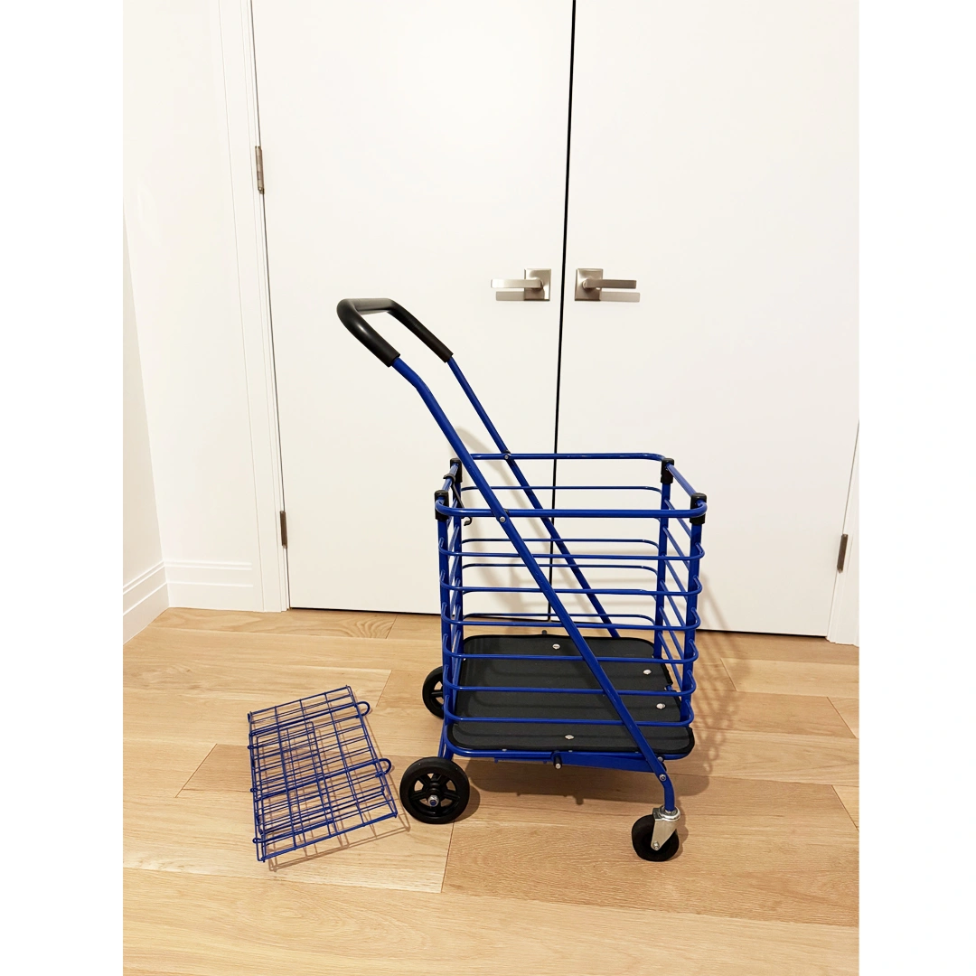 The Blue Grocery Cart with Accessory Basket is a multi-use cart great for grocery, laundry, shopping and other uses. It will hold up to 50 lbs. The accessory basket allows you to separate items from the cart as needed and is detachable. Easily folds up for compact storage.