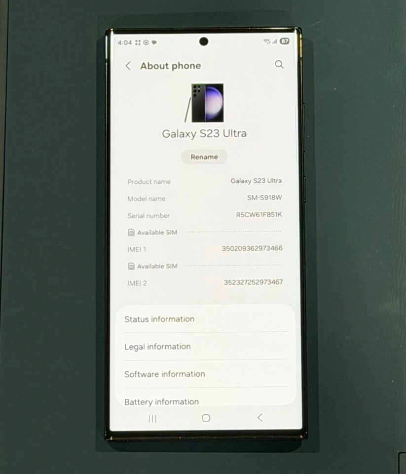 This Samsung Galaxy S23 Ultra phone is unlocked and working perfectly with an excellent battery. It's in 9/10 cosmetic condition with just some very tiny minor scratches on the screen and a tiny dent on one corner. Former corporate used phone. Yes, it's available unless otherwise noted. The price is FIRM! I will block and report anyone trying to lowball me.