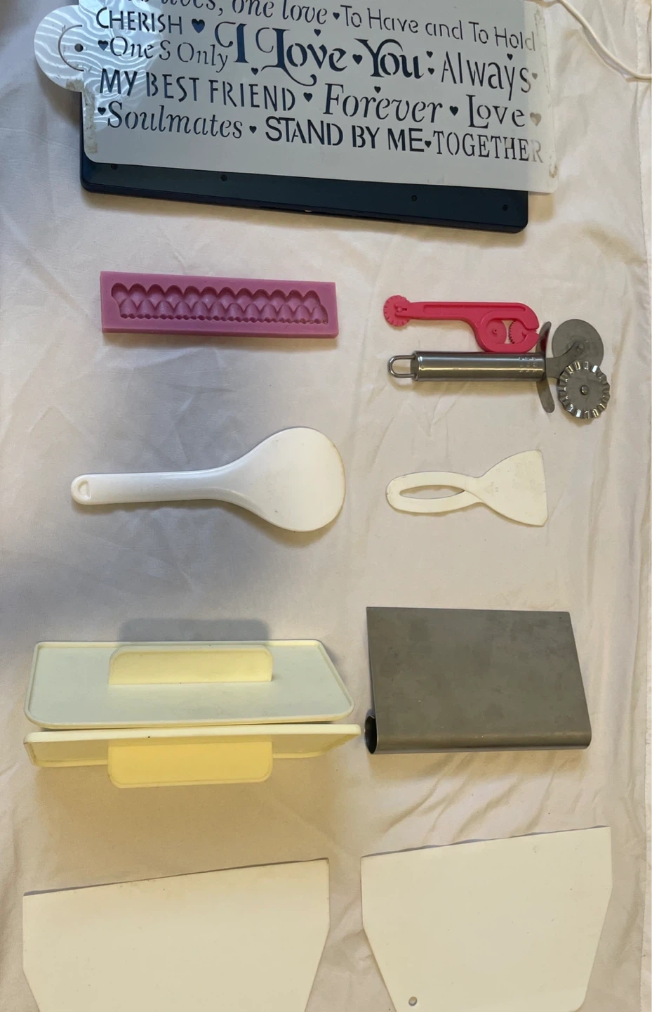 BRING YOUR ART TO LIFE!….. This set includes various tools for baking and decorating. It features a silicone mould, dough scraper, icing spatulas, and a pizza cutter. Also included are some smaller decorating tools and a stenciling item.