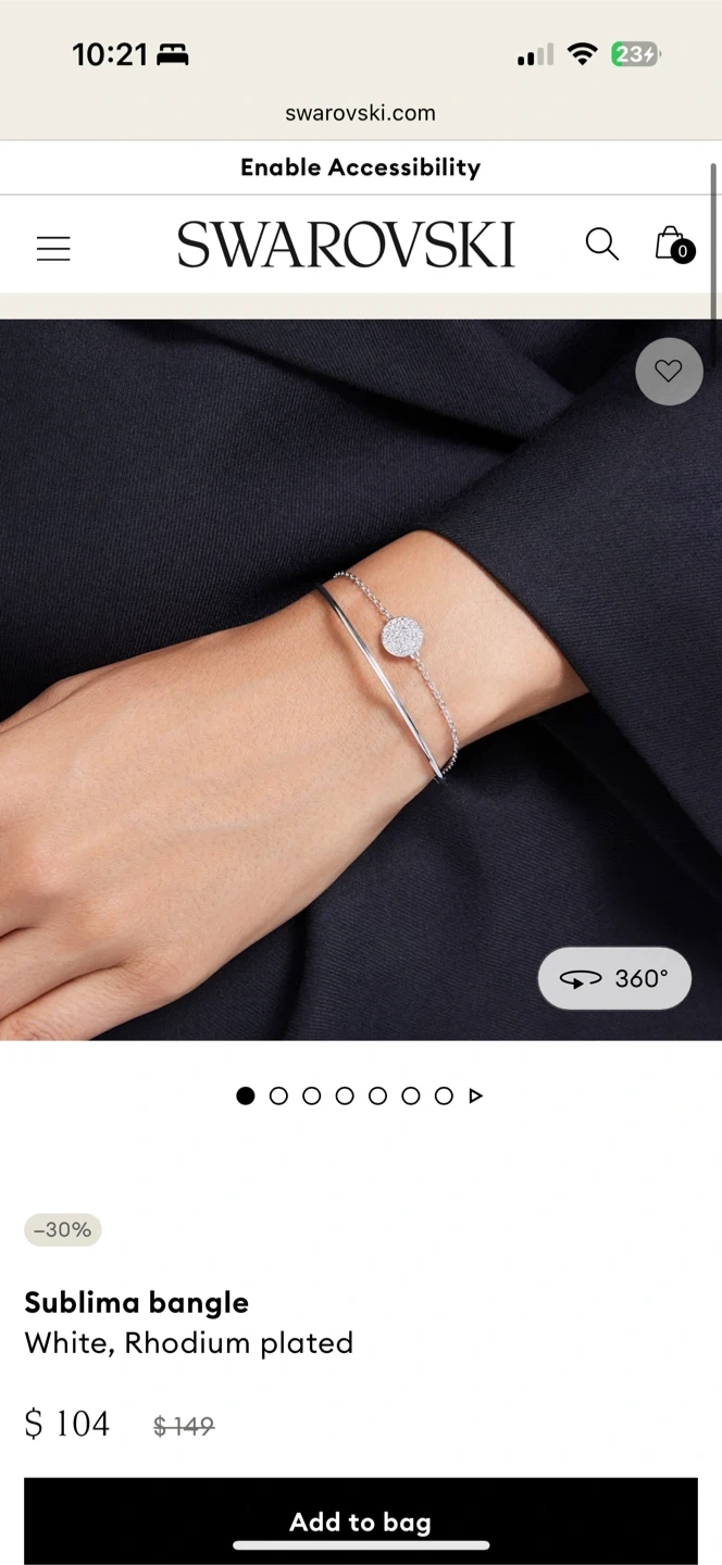Selling a Swarovski Sublima bangle. It's white and rhodium plated. Comes with the original box and gift bag!