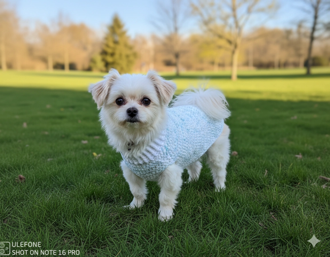 Handmade Dog Sweater - White & Blue