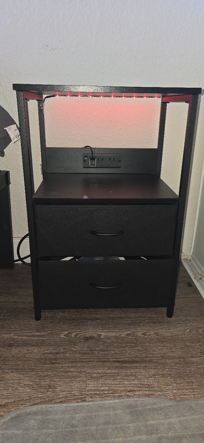 2 Black Two-Drawer Nightstand with LED Lights and Outlets