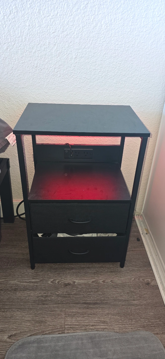 2 Black Two-Drawer Nightstand with LED Lights and Outlets