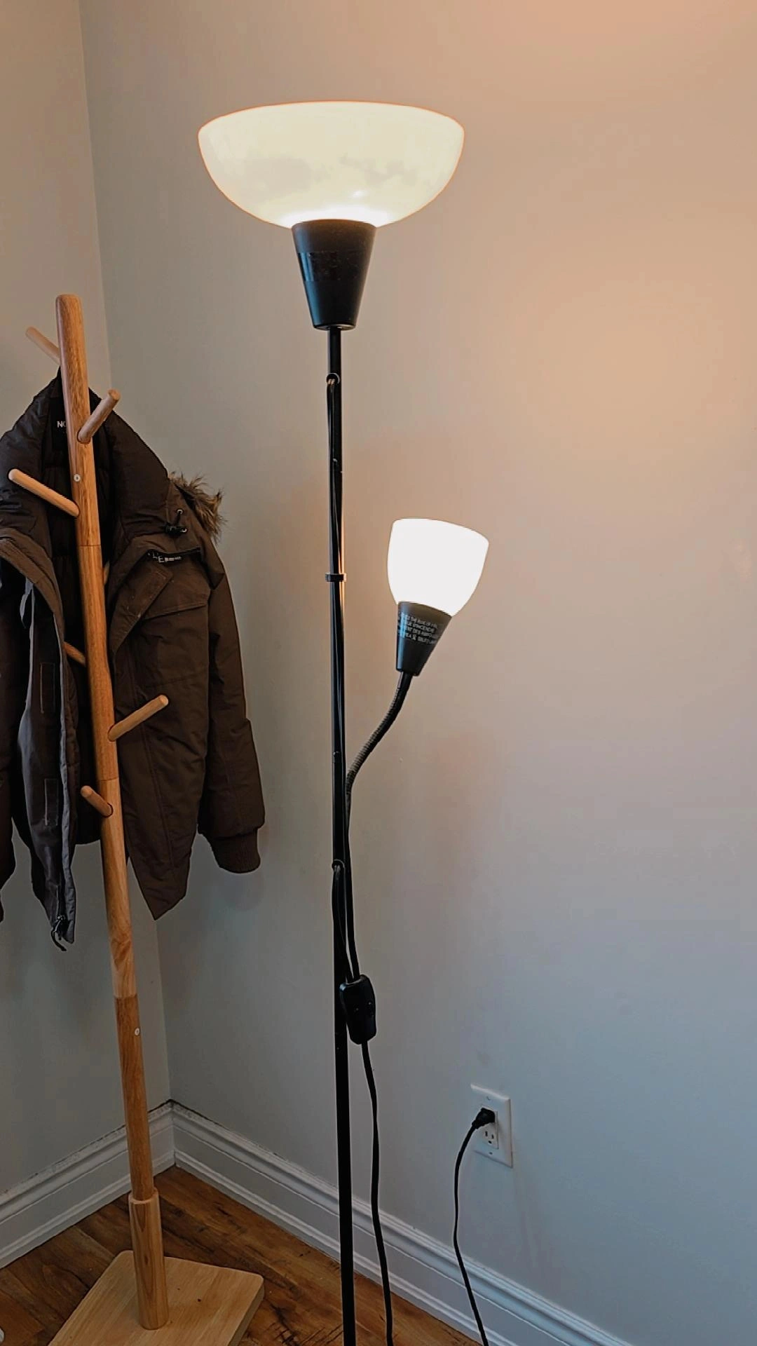 Floor lamp with a reading light. It's in great condition and ready to brighten up your space