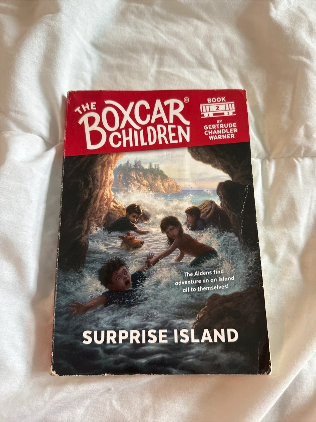 The Boxcar Children series book "Surprise Island", Book 2 by Gertrude Chandler Warner. The Aldens find adventure on an island all to themselves in this exciting story. It's a classic children's novel.