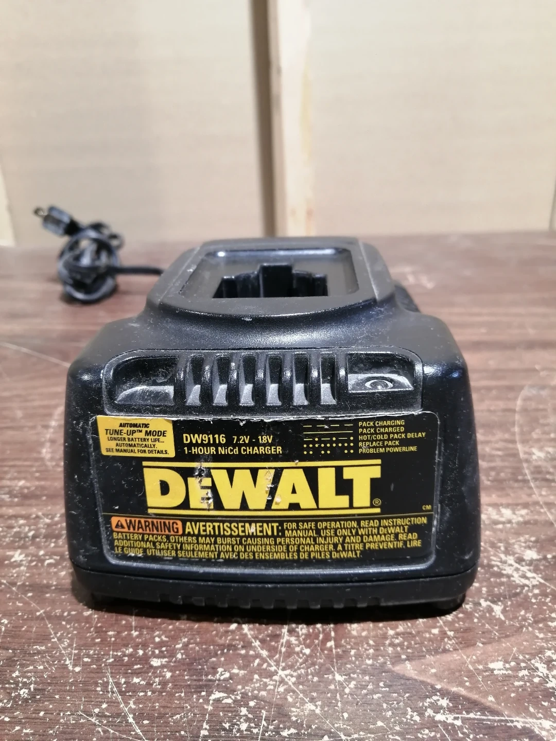 DeWalt DW9116 1-hour NiCd battery charger for 7.2V to 18V batteries. It features automatic turn mode for longer battery life. This charger is assembled in Thailand. Call Anthony