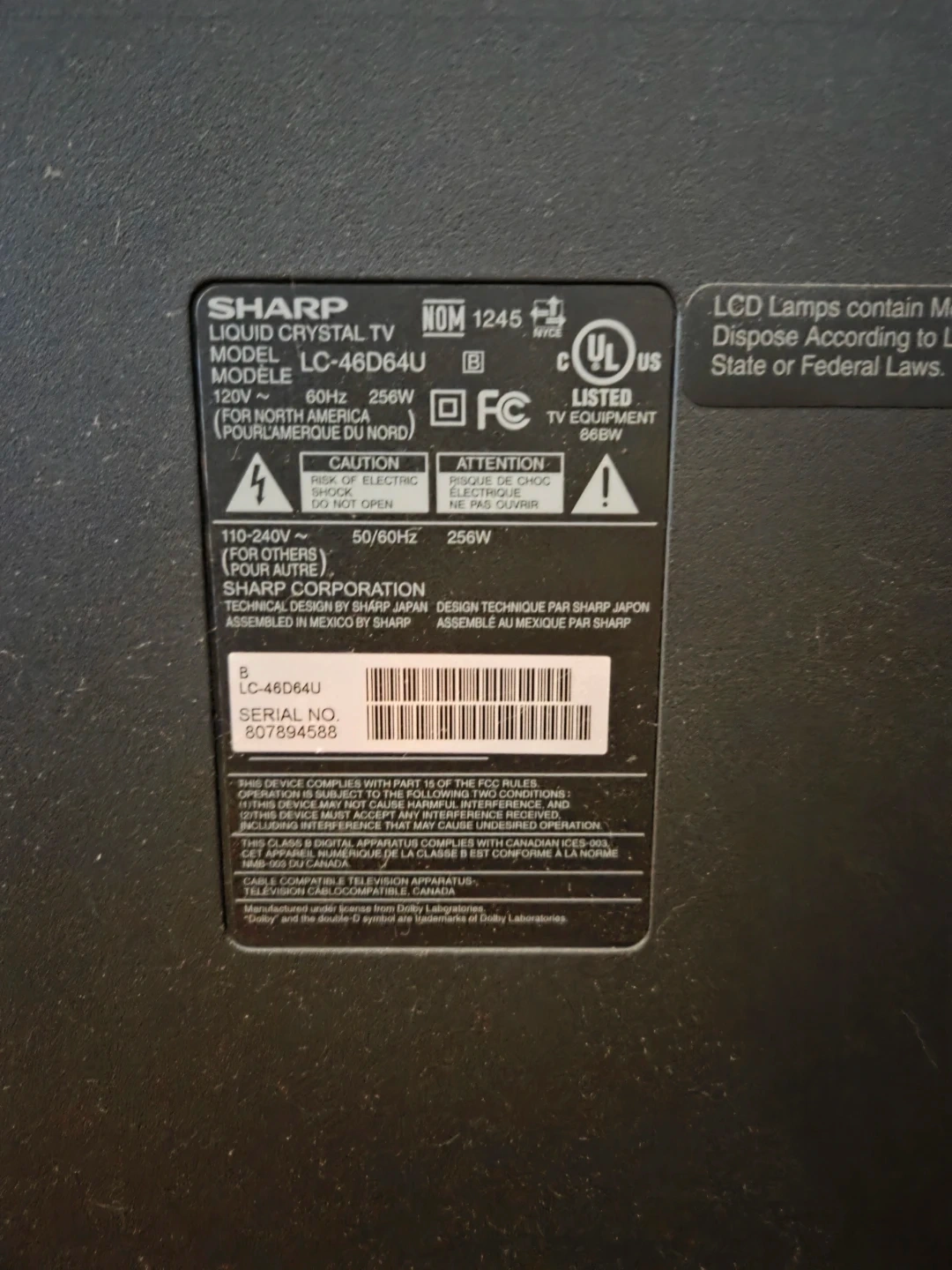 Selling a Sharp AQUOS LC TV, model LC-46D64U. It's a 46-inch screen that would be great for a living room or entertainment space. It's in good condition and ready for a new home!
