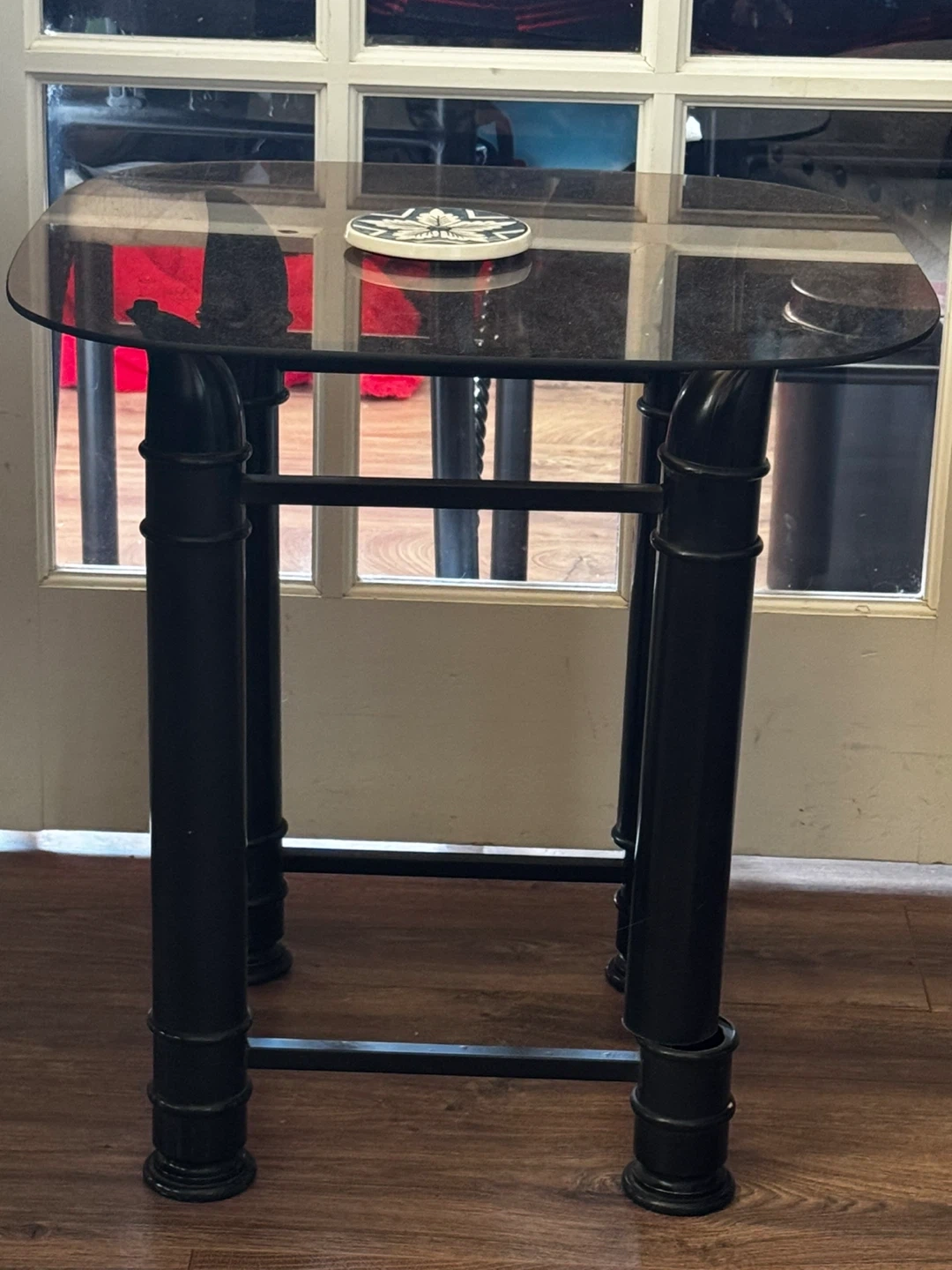 Set of Two Outdoor Wrought Iron Chairs and a free glass table