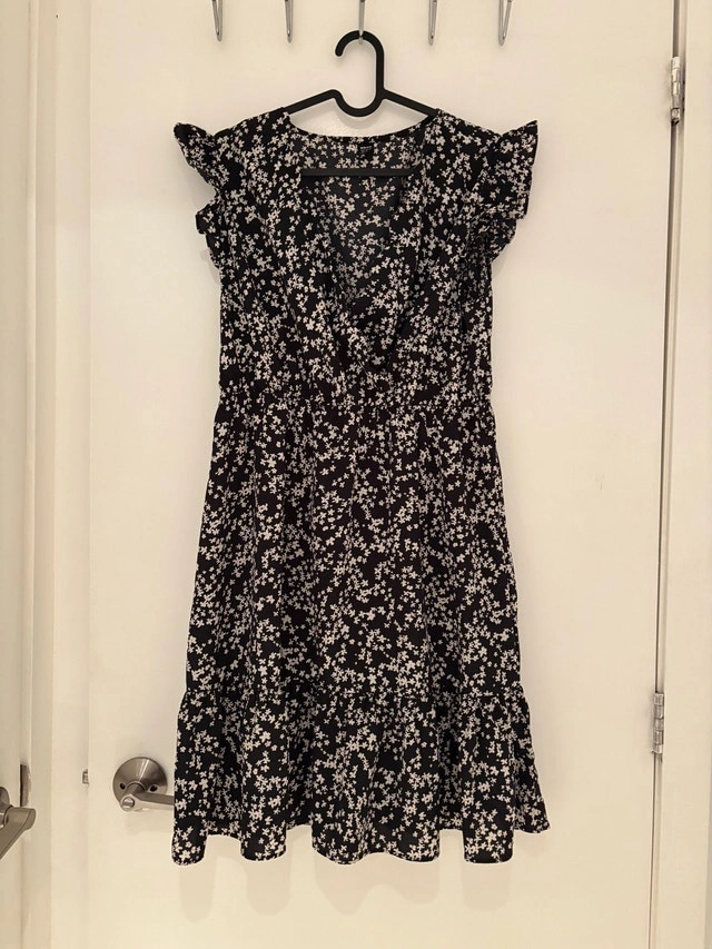 Buy & SellFloral Black and White V Neck DressFloral Black and White V Neck Dress$10Chic black dress with white floral pattern. Features ruffled sleeves and a flattering fit. Pick up at King and Portland. Cash only.WHERE TO MEETCheck LocationView MapSELLERverifiedJuhiFashion District1196 reviews0 chats·0 favorites·3 viewsSEND CHAT TO SELLERHi Juhi! I’m interested in your listing.Hi Juhi! I’m interested in your listing.Get the Karrot app to chatSign In to chat
