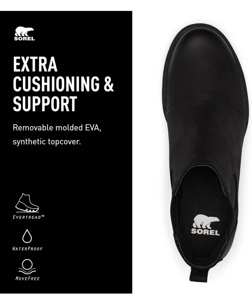Rugged & Timeless Chelsea Boot: This waterproof Chelsea boot offers rugged support when you're on the move, making these boots perfect for running errands in cold and wet weather. The SOREL fashion boot has a leather upper for durability and style, with a canvas and synthetic lining. The women's shoe has a rubber outsole for reliable traction and a rubber midsole for shock absorption and cushioning. This slip-on, timeless waterproof boot is easy to slip into and take off, perfect for busy days. The waterproof Chelsea boot features a leather-wrapped heel and molded Evertread rubber outsole. SOREL combines craftsmanship and style to create all-season footwear. Pick up in Courtice. Please check my other listings!