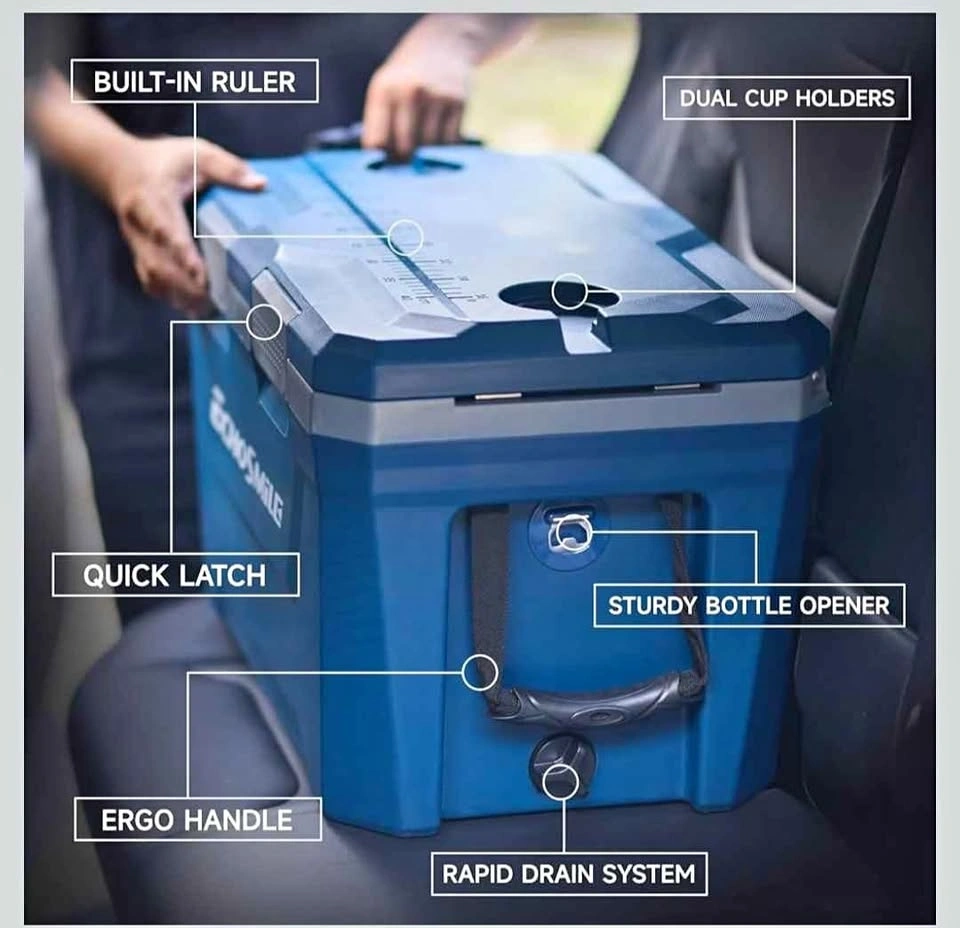 EchoSmile Insulated Portable Cooler 35 Quart, Outdoor Hard Cooler w/ 2 Cup Holders, Bottle Opener, Ruler, Drain Plug Ice Chest Box for Camping, Drink, Beach, Fishing and Boating.