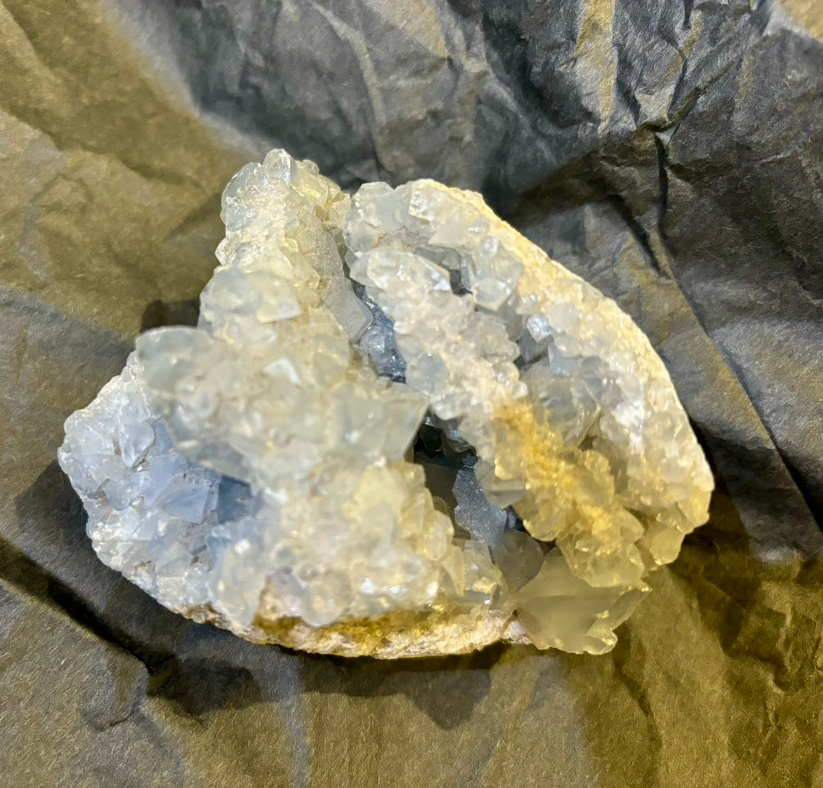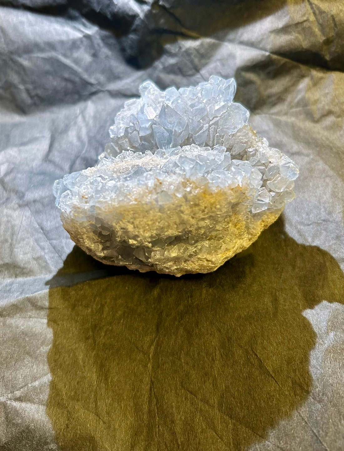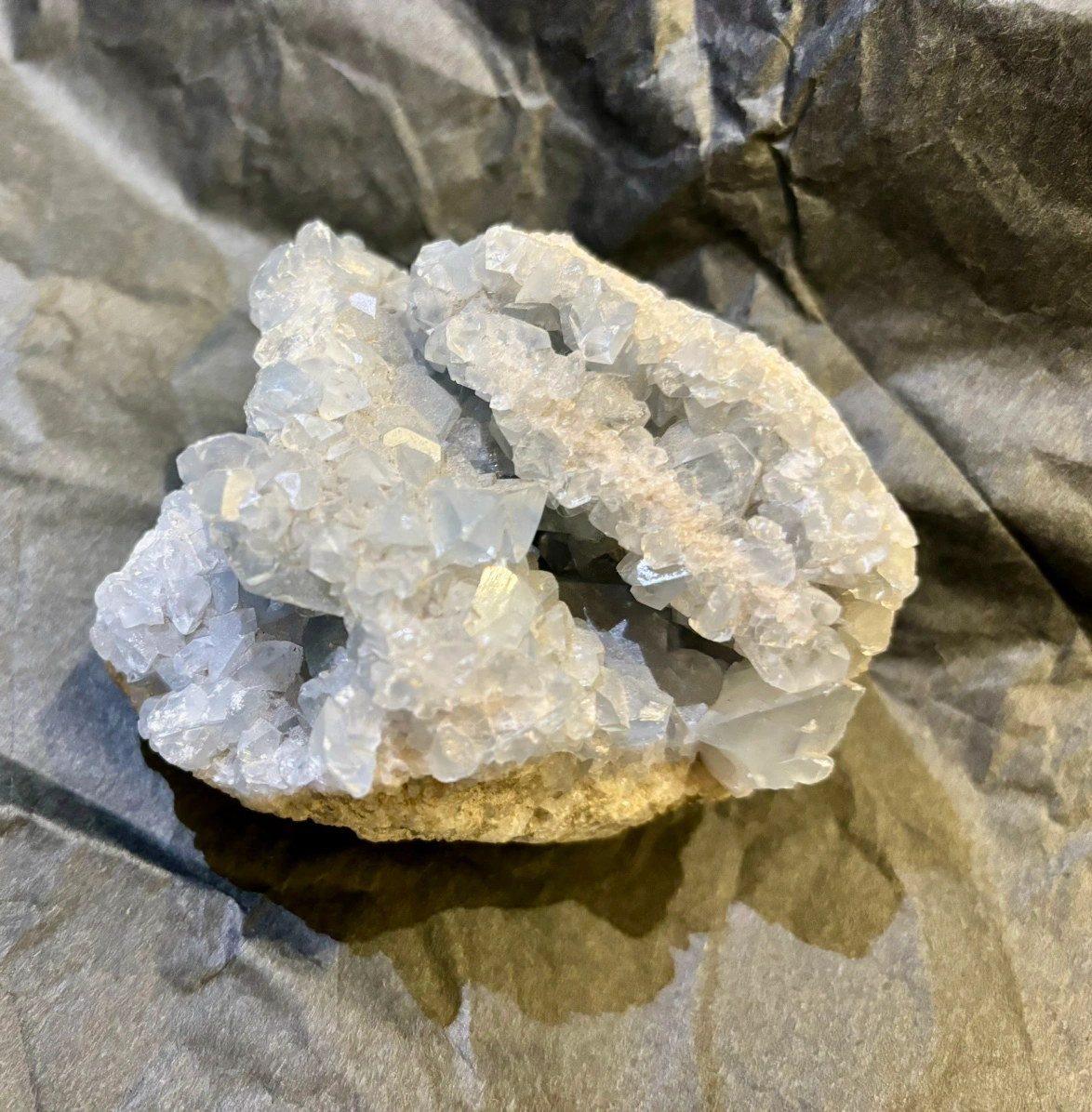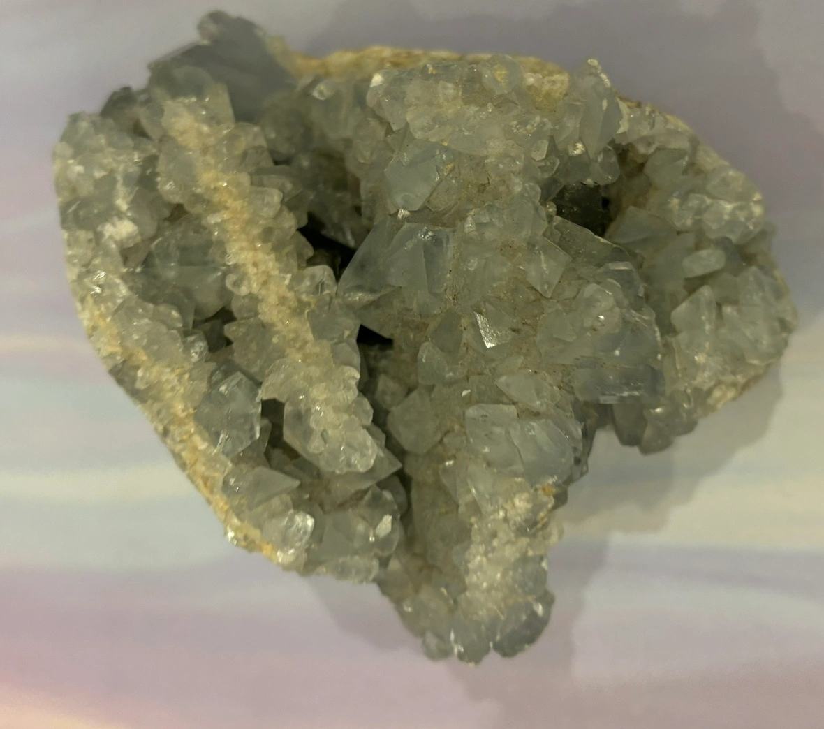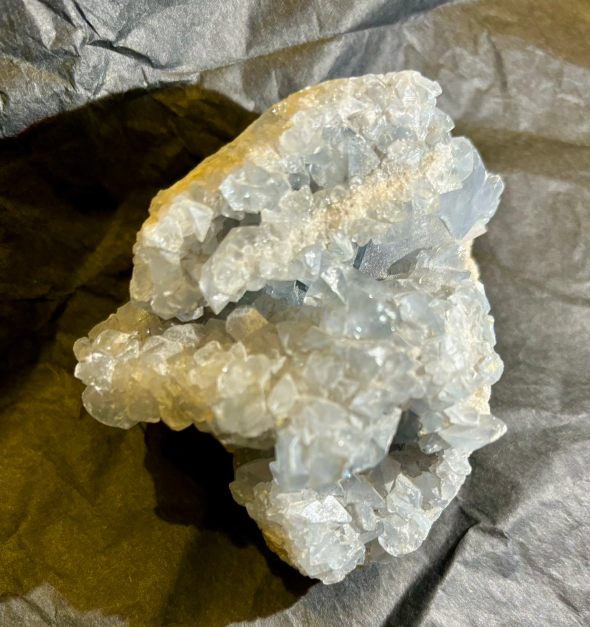 Beautiful celestite crystal cluster, perfect for any crystal collection! This cluster features many beautiful, clear crystals. It is approximately 4 inches tall and 3 inches wide.