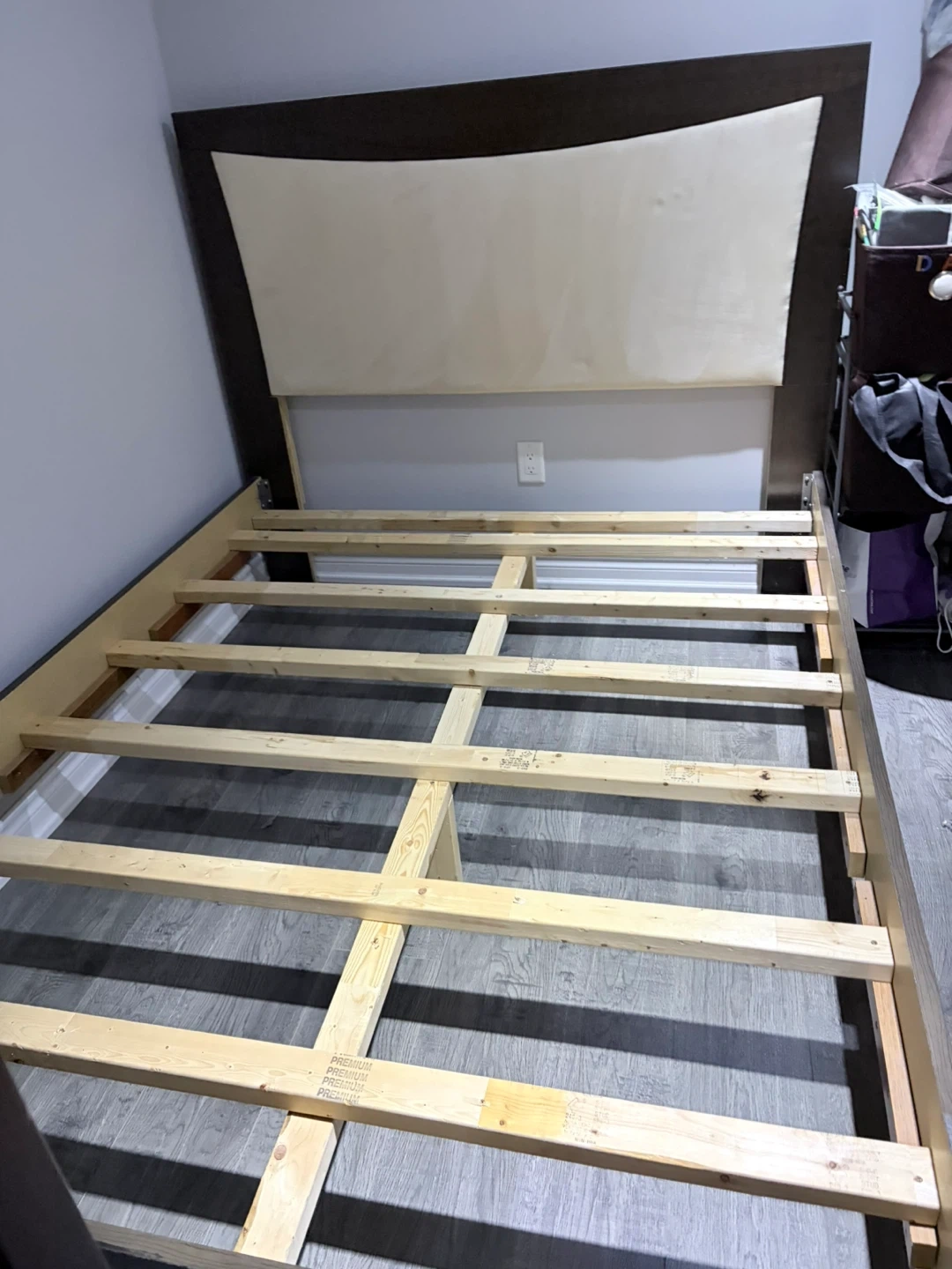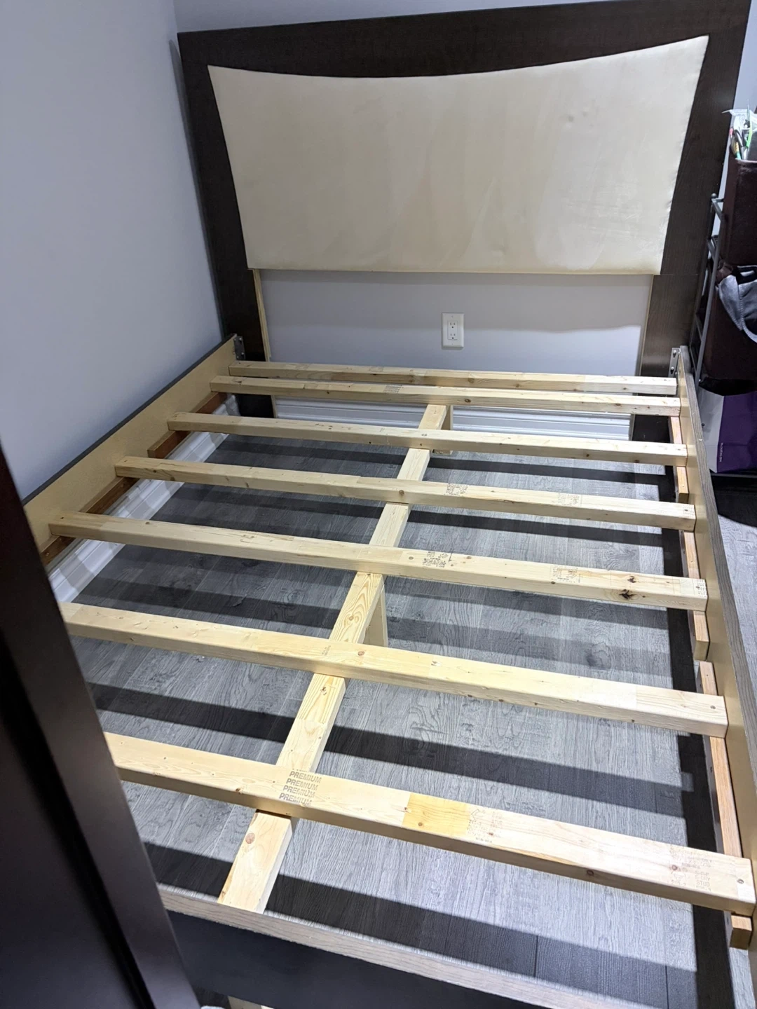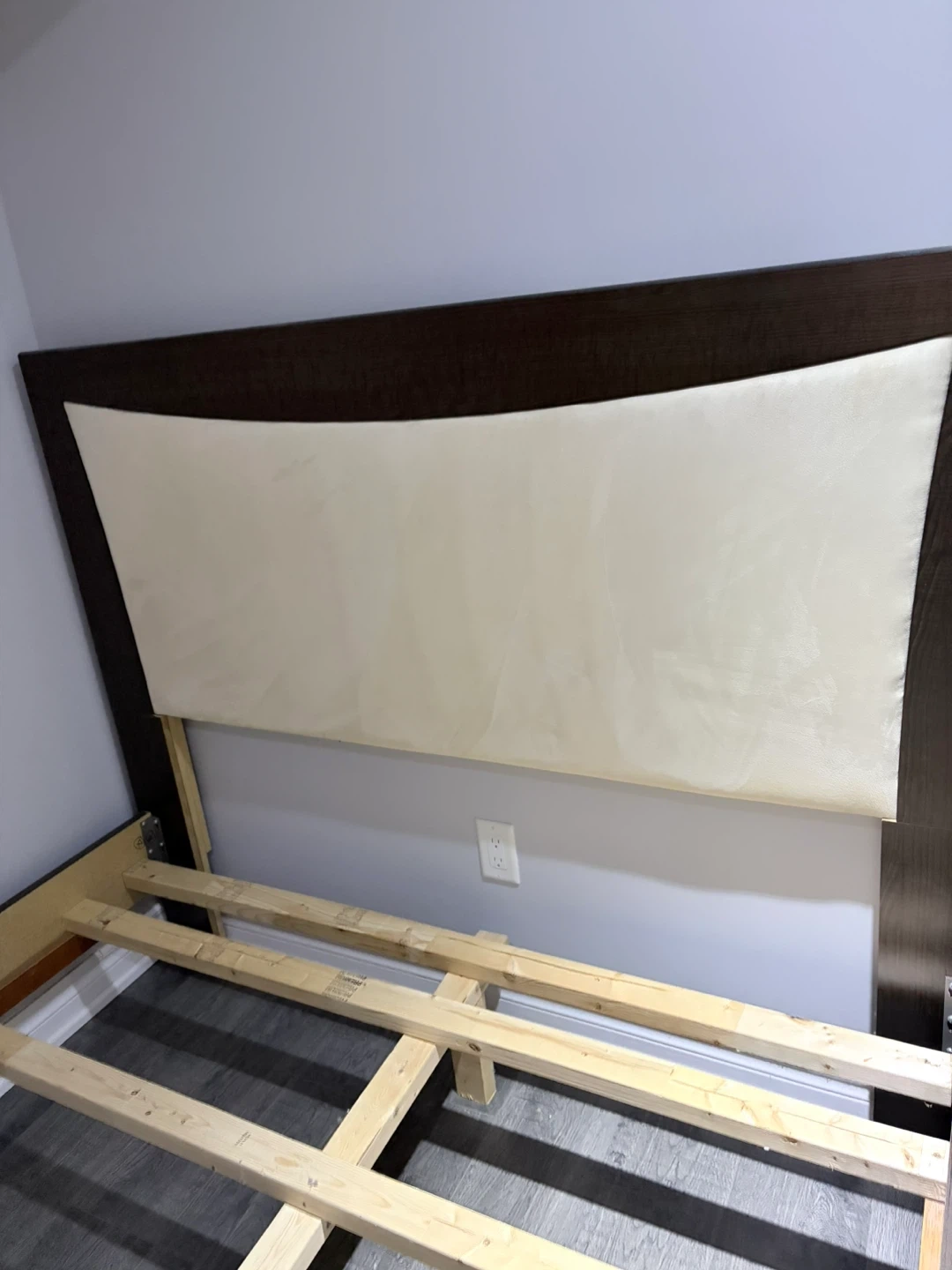 Buy & SellQueen Size Bed Frame with Upholstered HeadboardQueen Size Bed Frame with Upholstered Headboard$66Queen size bed frame with a dark brown wood finish and a light beige upholstered headboard. It features a sturdy wooden slat support system.WHERE TO MEETCheck LocationView MapSELLERverifiedJuvyDowntown Markham600 reviews1 chats·1 favorites·42 viewsSEND CHAT TO SELLERHi Juvy! I’m interested in your listing.Hi Juvy! I’m interested in your listing.Get the Karrot app to chatSign In to chat