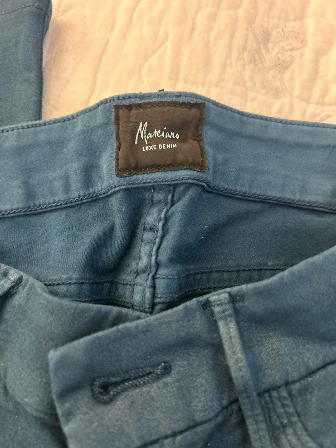 Selling a pair of Marciano Luxe Denim jeans in a lovely teal colour. They're in great condition and are a size 25. Perfect for adding a pop of colour to your wardrobe!