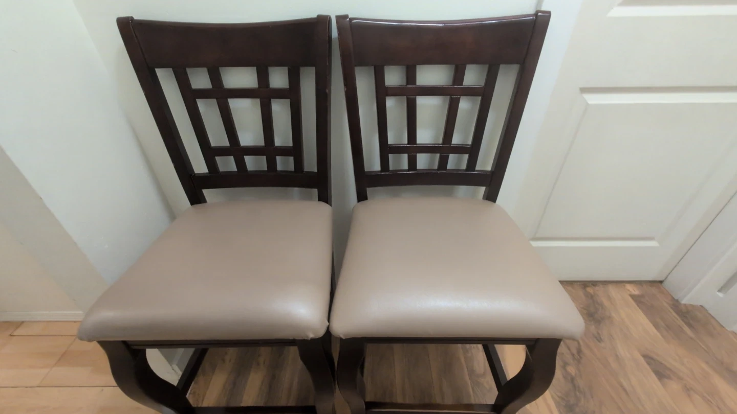 Dark Brown Wooden Bar Stools with Beige Cushions (Set of 2)
