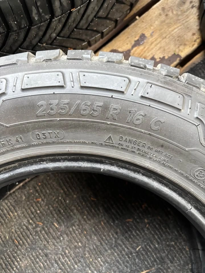 Size: 235/65R16C (Load Range E / 10-ply). Condition: 85% tread remaining.