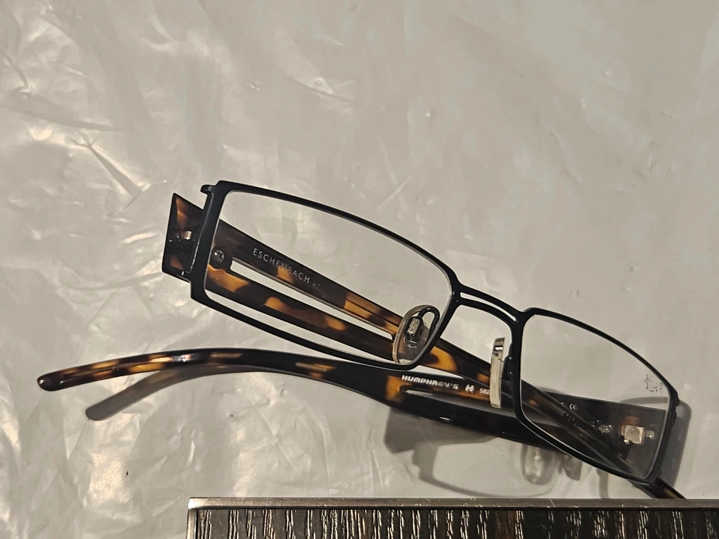 These are a pair of Eschenbach Humphrey's eyeglasses. They feature a tortoiseshell pattern on the arms and a dark brown metal frame with flexible plastic arms. The bridge width is 16mm and the temple length is 145mm. They're a stylish accessory for everyday wear!