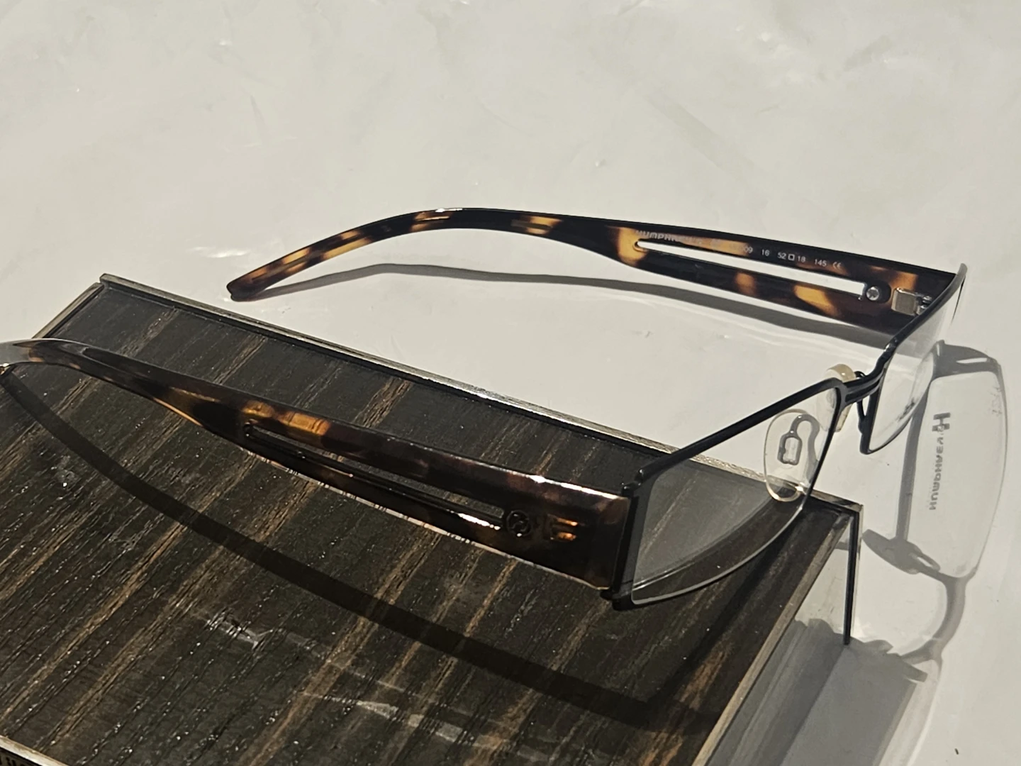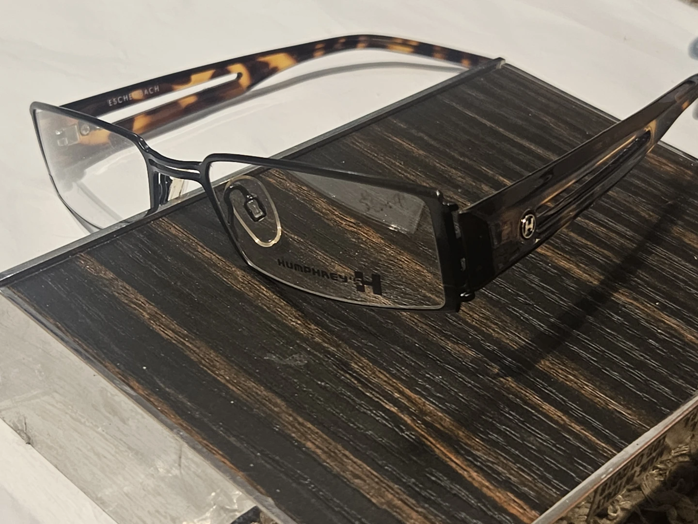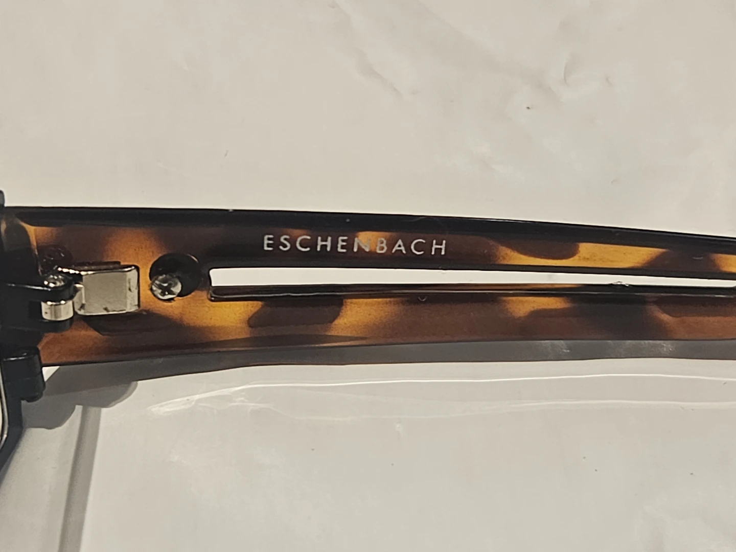 These are a pair of Eschenbach Humphrey's eyeglasses. They feature a tortoiseshell pattern on the arms and a dark brown metal frame with flexible plastic arms. The bridge width is 16mm and the temple length is 145mm. They're a stylish accessory for everyday wear!