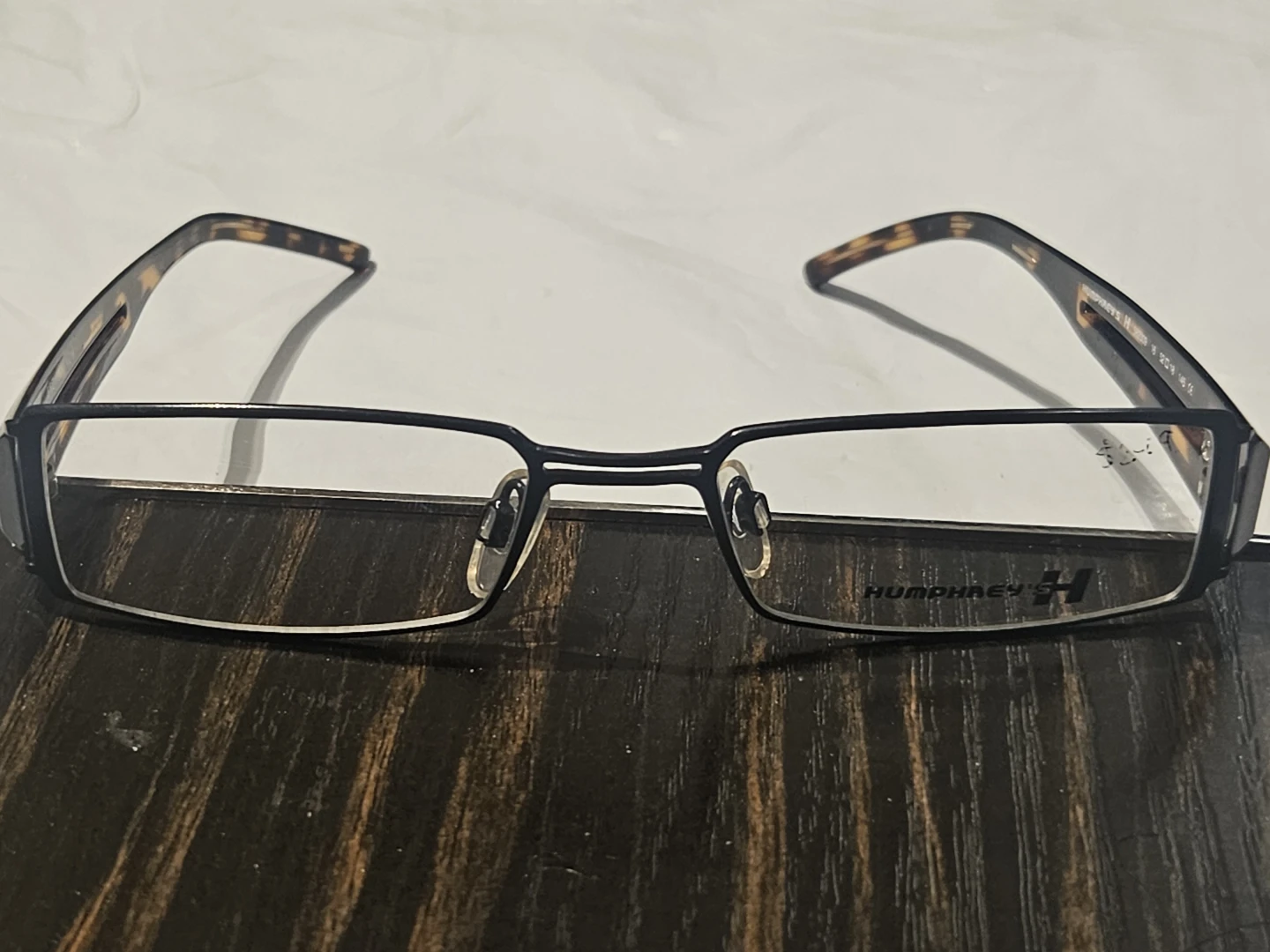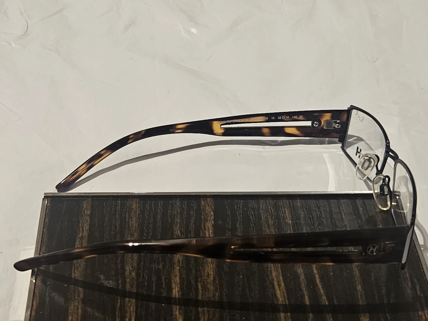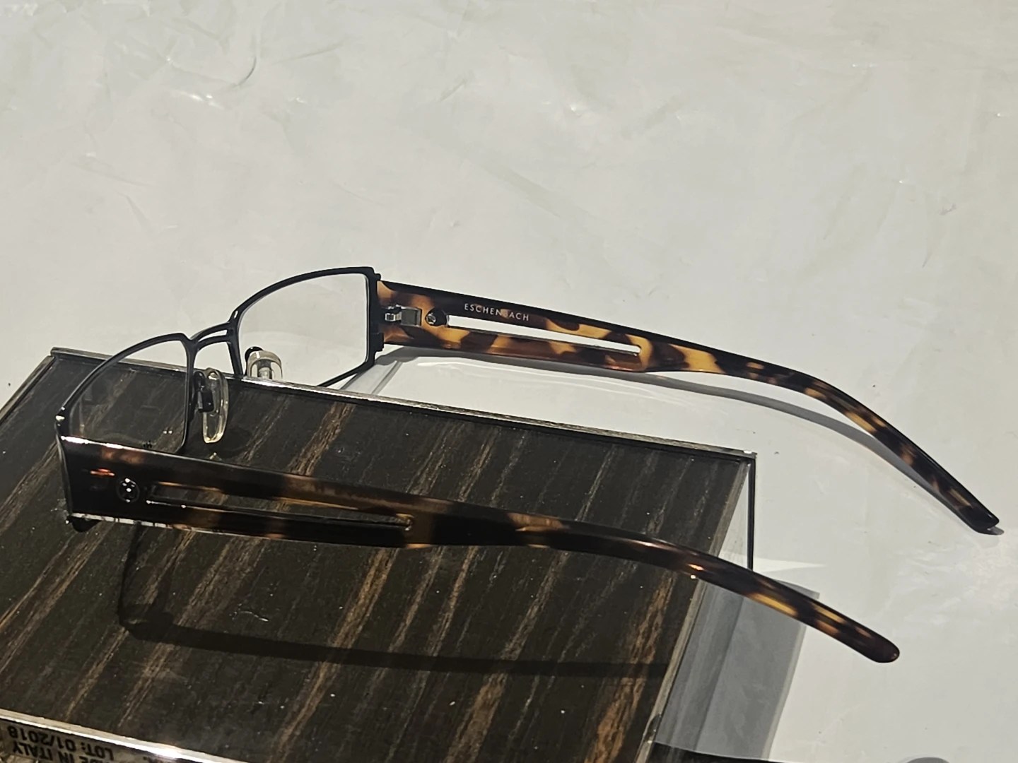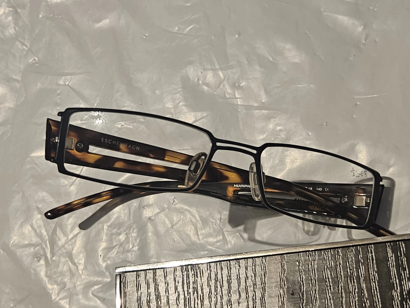 These are a pair of Eschenbach Humphrey's eyeglasses. They feature a tortoiseshell pattern on the arms and a dark brown metal frame with flexible plastic arms. The bridge width is 16mm and the temple length is 145mm. They're a stylish accessory for everyday wear!