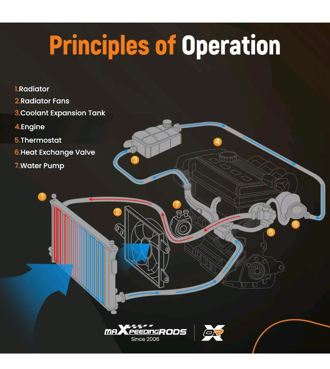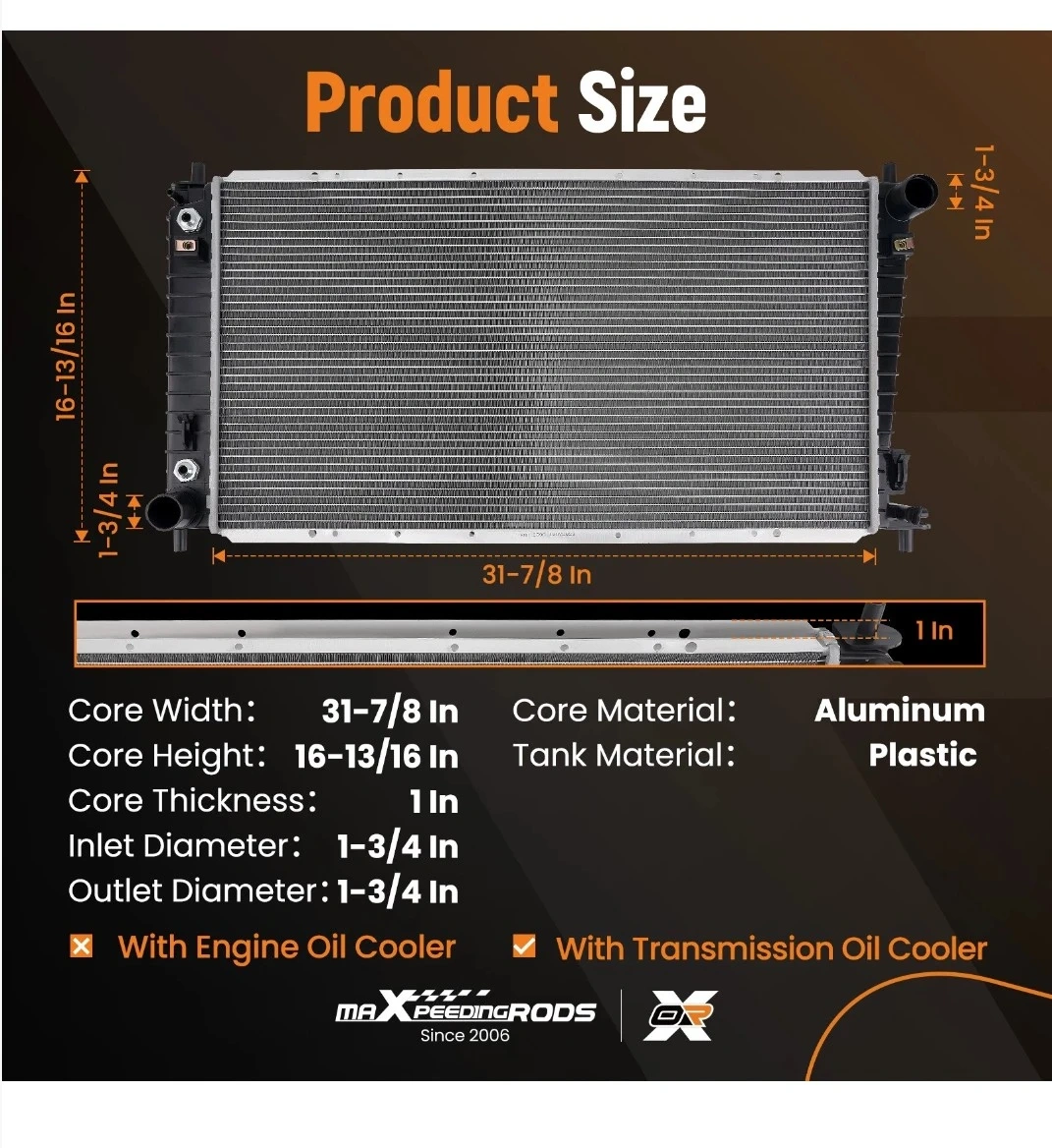 This aluminum radiator is designed for leak-proof and heat-proof performance. It features rapid cooling capabilities to keep your engine running smoothly. Inlet and outlet diameters are standard for easy installation. This radiator includes an oil cooler for enhanced efficiency.