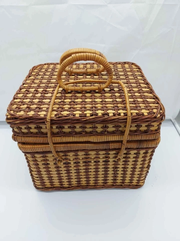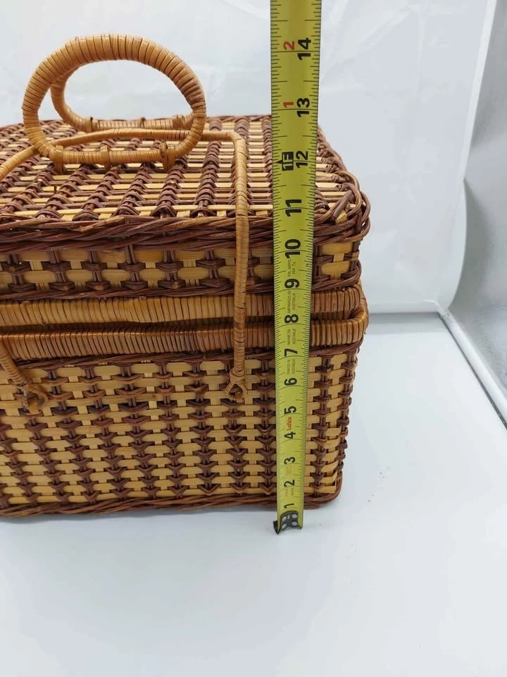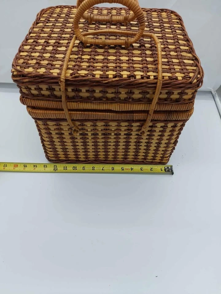 Vintage Wicker Basket with Set Of 4 Dinnerwear. Measurements are in the pictures. No holds, cash only, price firm, pickup in St.Thomas, as is (No Returns).