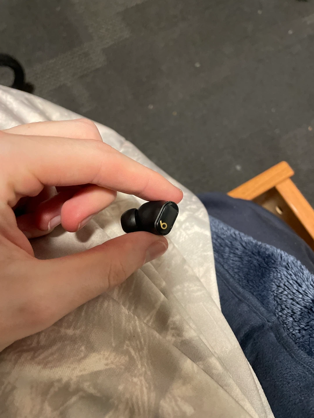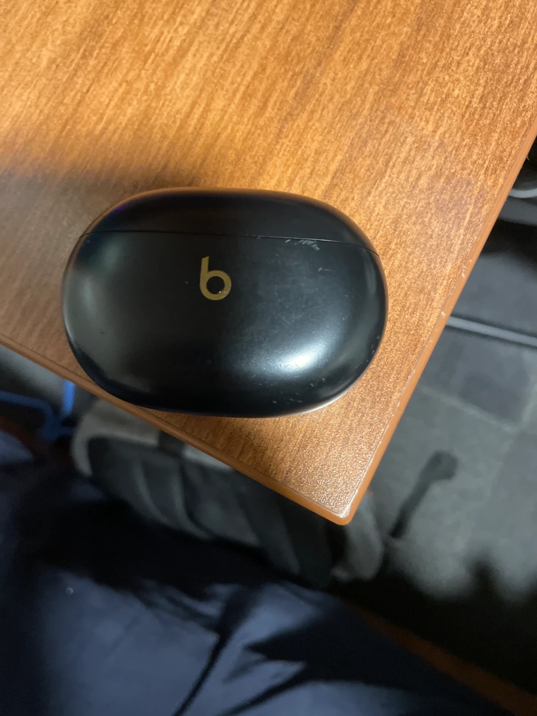 Black wireless earbuds from Beats. Includes charging case. These earbuds provide a great listening experience for music or calls. Noise cancellation and transparency modes for active listening. Been used for 6 months (no damage, see pics) and cleaned, will be fully cleaned once again on purchase. You can test them at the meetup to validate. USB-C not included