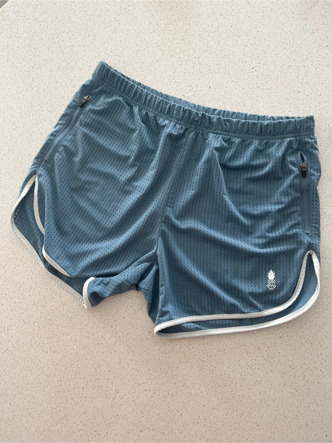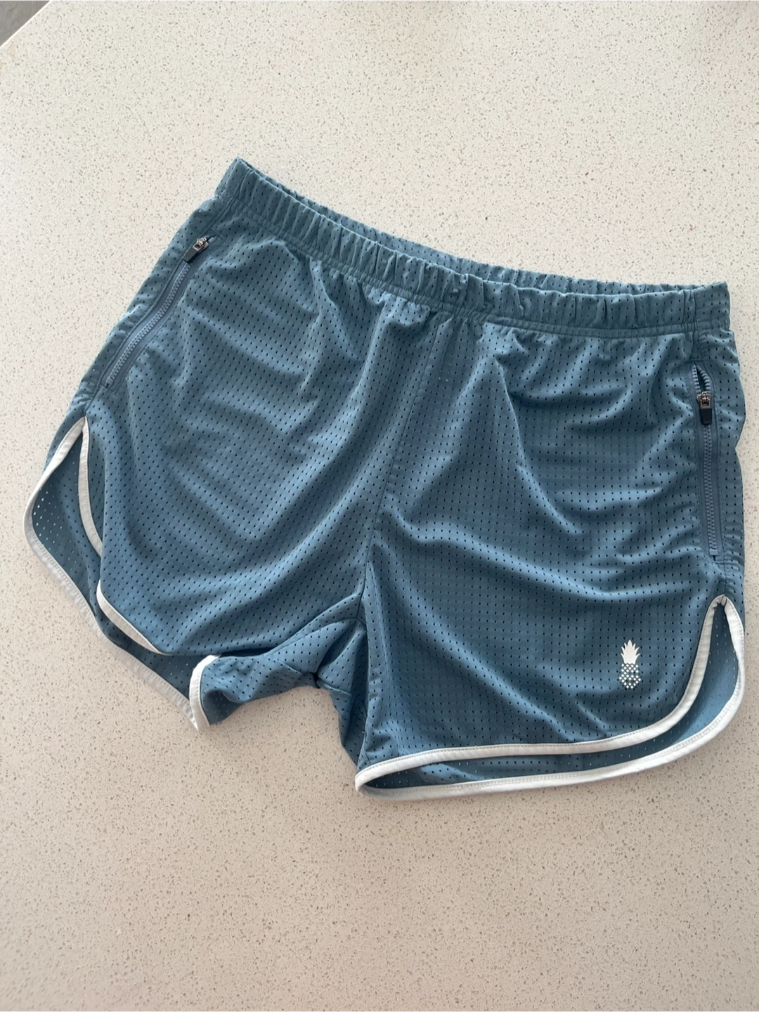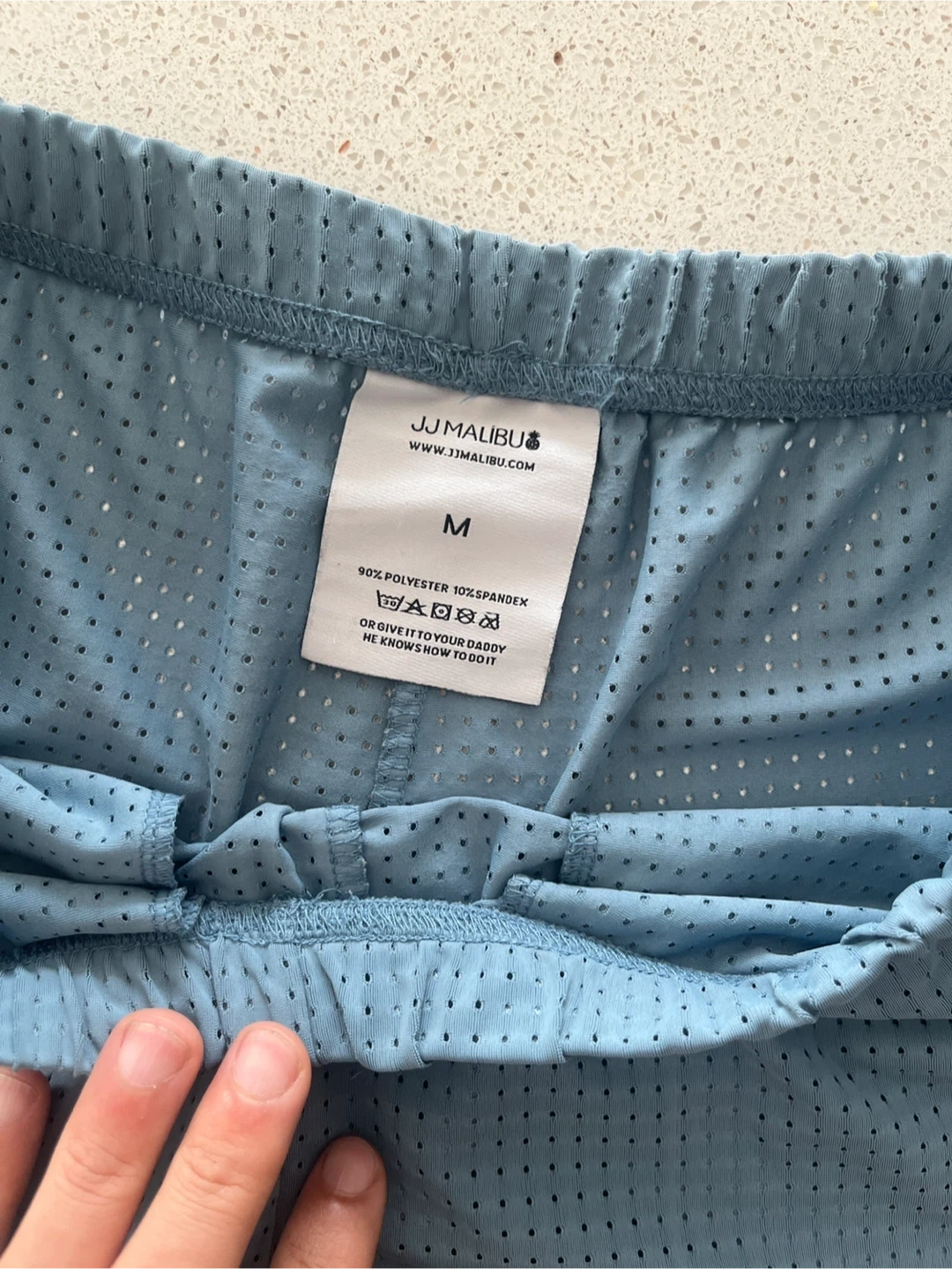 These JJ Malibu shorts are a size medium. They're made with 90% polyester and 10% spandex for a comfortable fit. The mesh fabric offers breathability during workouts. Fits more of a large?