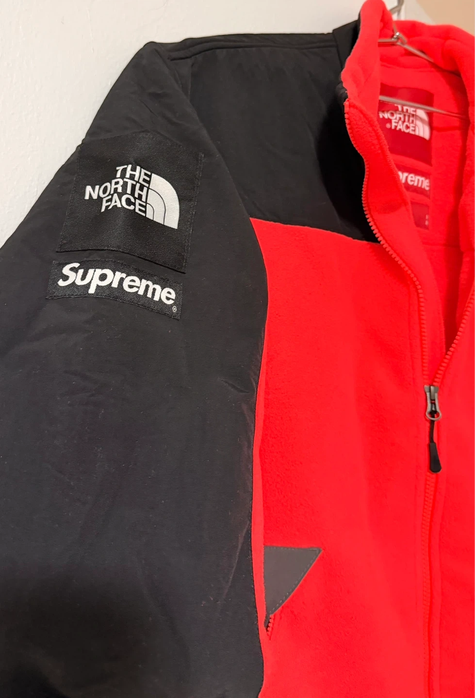 Selling a Supreme x The North Face RTG Fleece Jacket in size medium. This brand new jacket is 100% original, ready to have a new owner! This jacket features a bold color block design in red and black, with the iconic logos of both Supreme and The North Face. Perfect for staying warm and stylish!