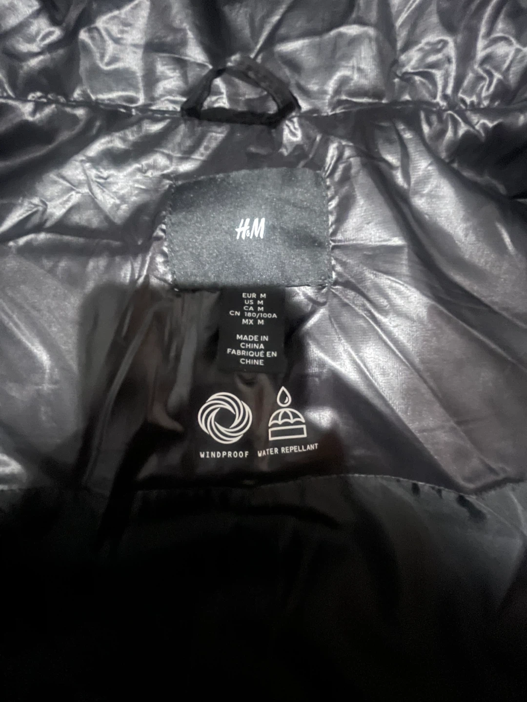 Selling a gently used H&M black puffer jacket in size M. It's in great condition and perfect for keeping warm during the colder months. The jacket is windproof and water-repellent, making it a practical choice for various weather conditions. The shell is 100% polyester and the lining is also 100% polyester. I didn’t wear that much. Send me your best offer or do you have anything to trade? Let me know.