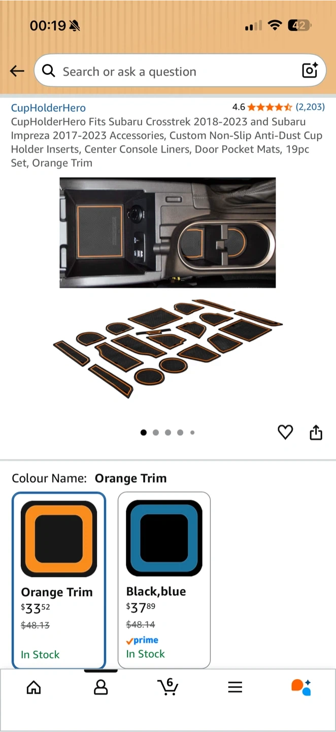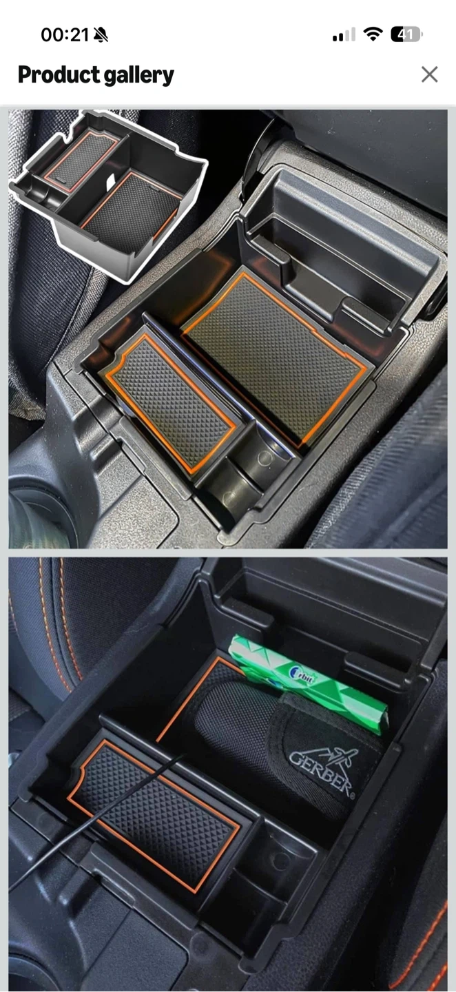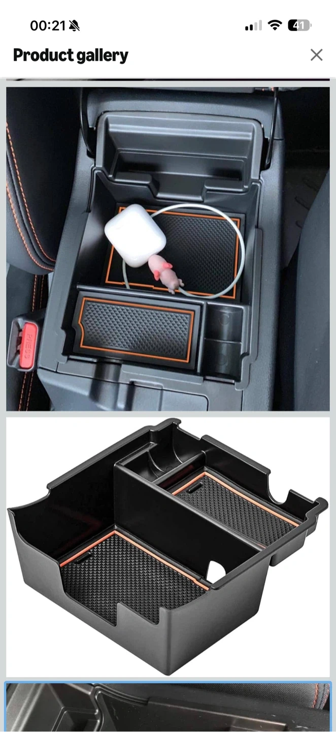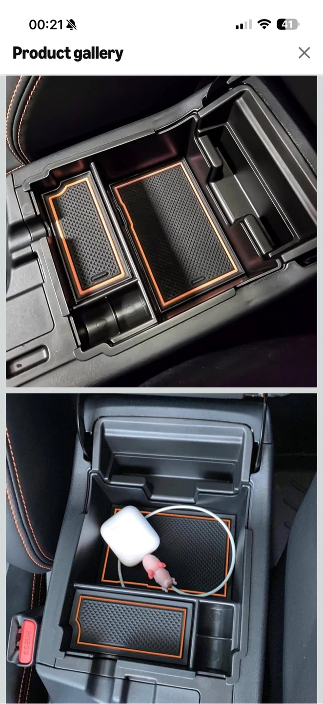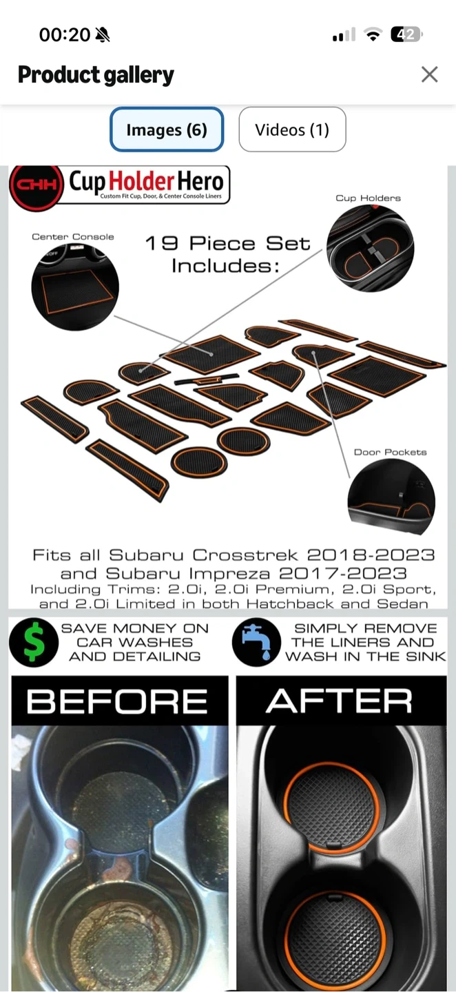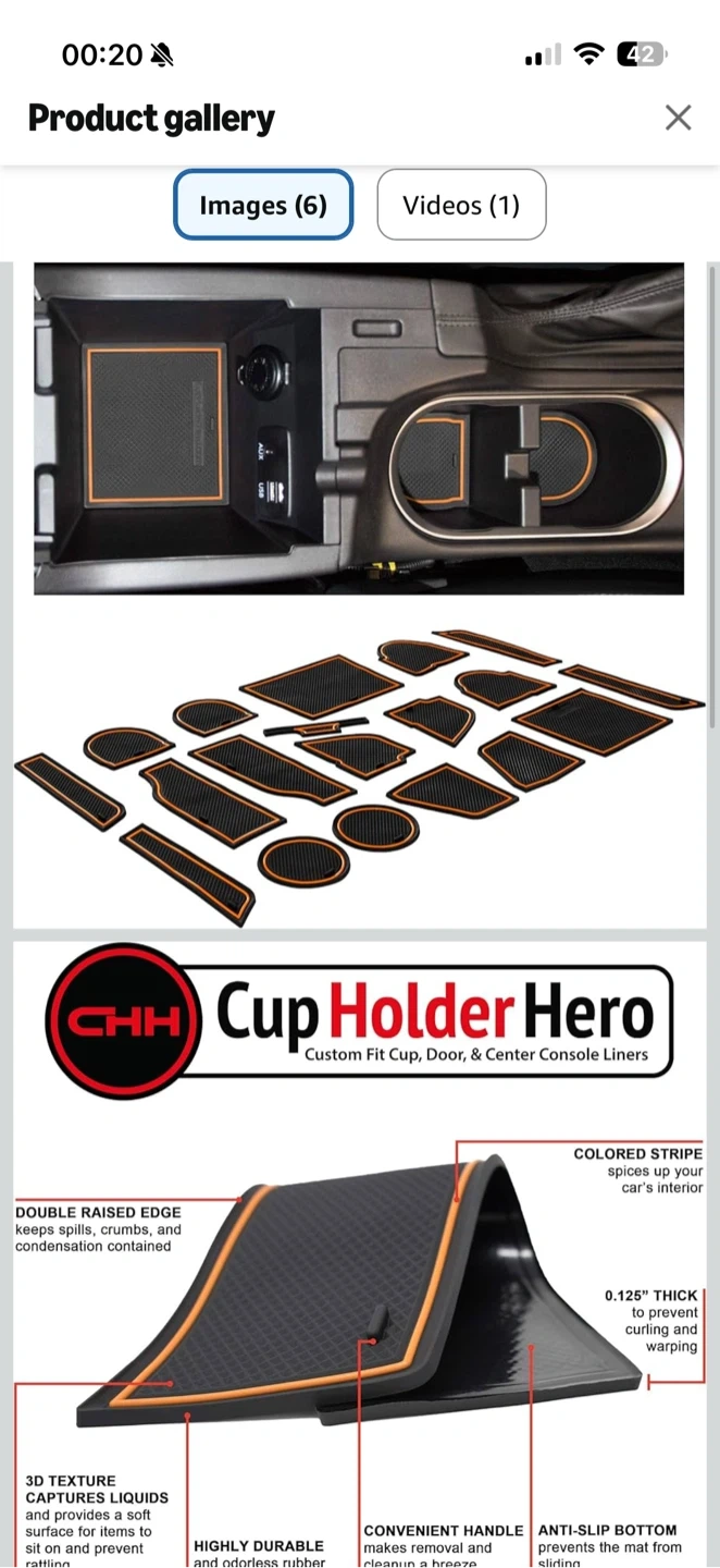 This is a 19-piece set of custom fit, non-slip console liners and cup holder inserts with orange trim. They're designed to prevent spills, crumbs, and condensation from damaging your car's interior.