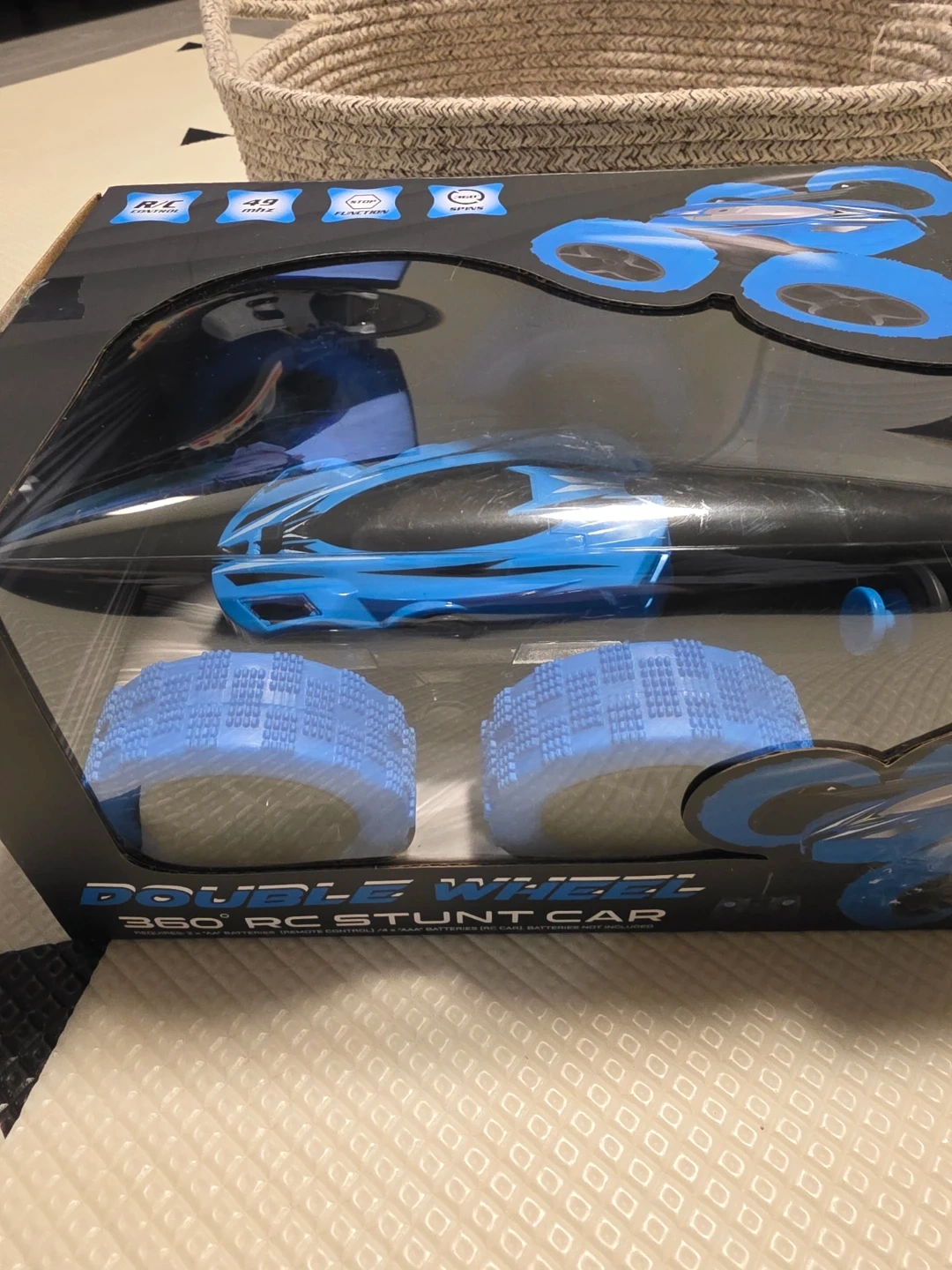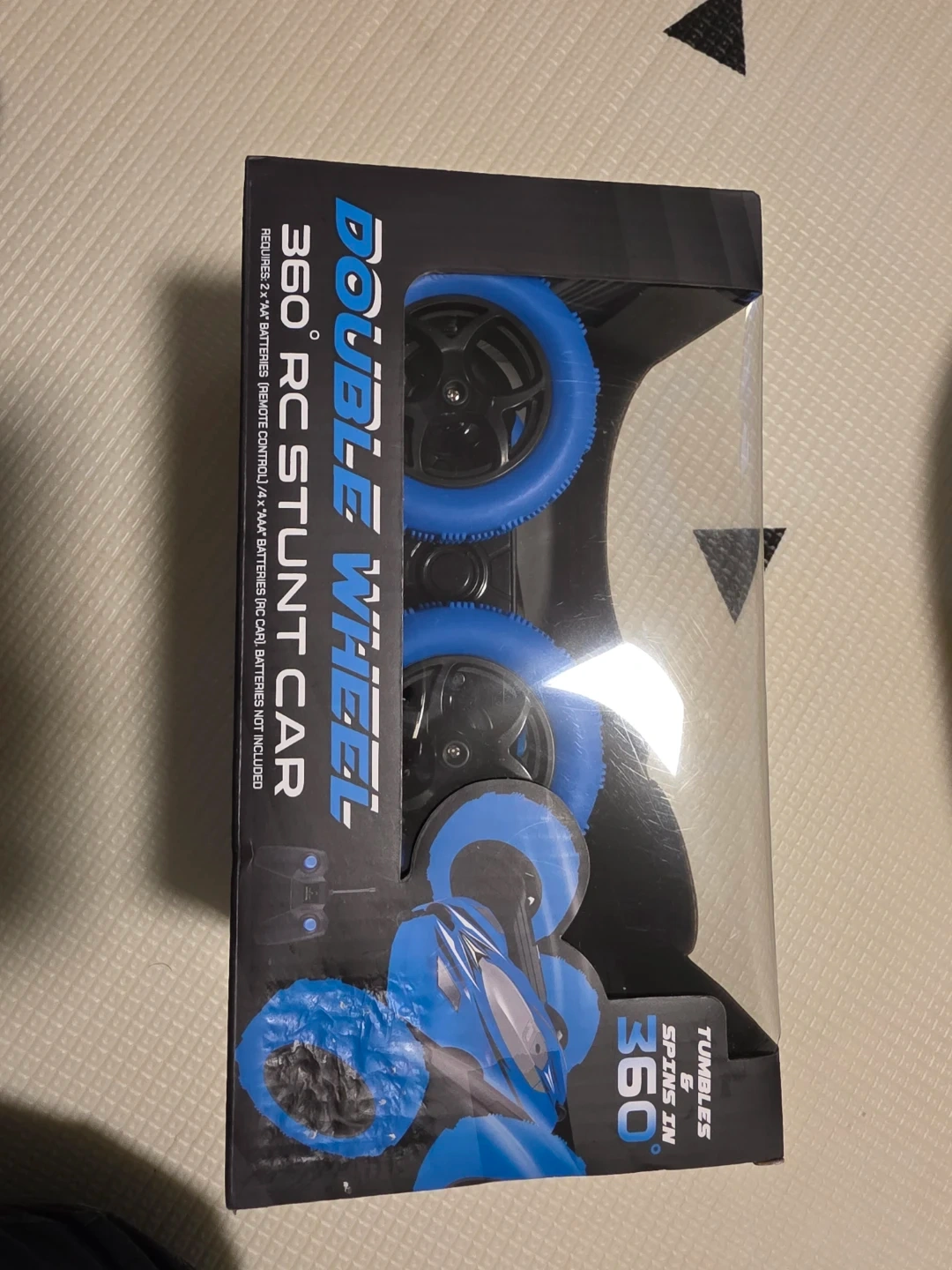 Selling a brand new Double Wheel 360° RC Stunt Car! It tumbles and spins in 360 degrees. Requires 3 x 'AA' batteries for remote control and 4 x 'AA' batteries for car (batteries not included)