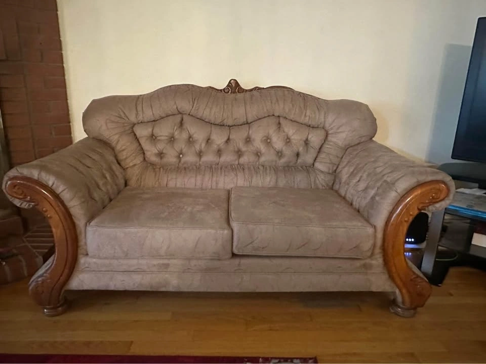 Selling a comfortable couch as part of a moving sale. It's in good condition and has plenty of life left. Perfect for a living room or den.