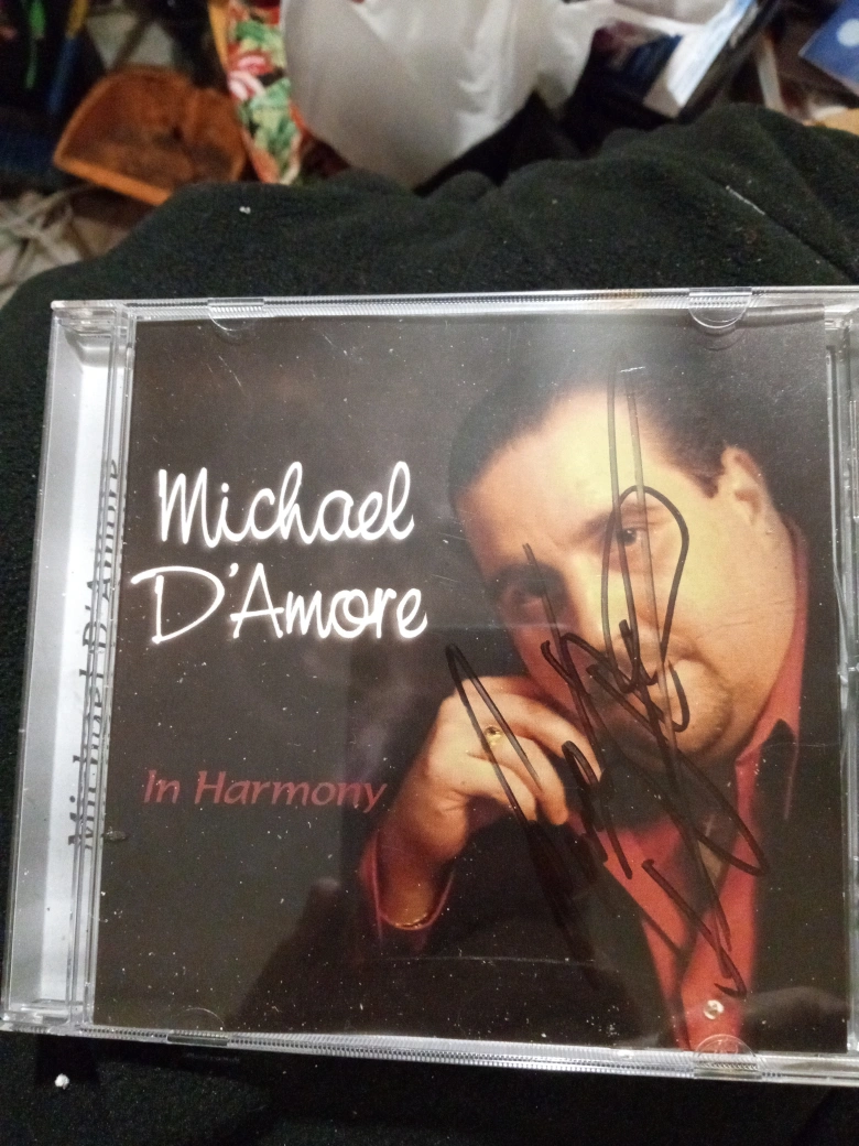 Michael d amor signed the CD and it's called in harmony there's nothing wrong with the CD it plays nice I don't want to mess with it because it's kind of old regular CD like this is 25 but with autographed it's worth a little bit more I'm only asking 40