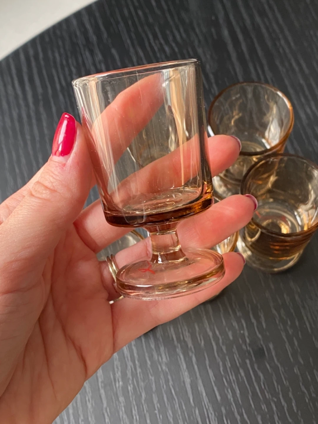 Vintage Amber Glass Footed Liquor Glasses
