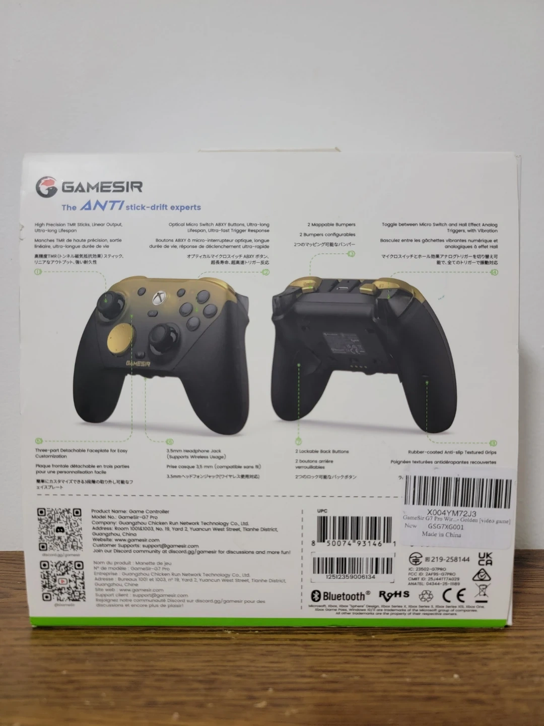 Gamesir g7 pro tri mode (wired/wireless/bluetooth) controller. Box includes controller, manual, charging dock, wireless dongle, cable, 2 other dpad options and unused xbox gamepass ultimate code.
