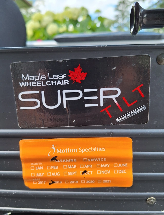 Maple Leaf Super Tilt Wheelchair with head and arm rests. Heavy duty low rider with inflatable seat cushion (no cover). Made in Canada 2018, mint condition very smooth tilt and rides like new. Please see pictures and manufacturer specs for more details.