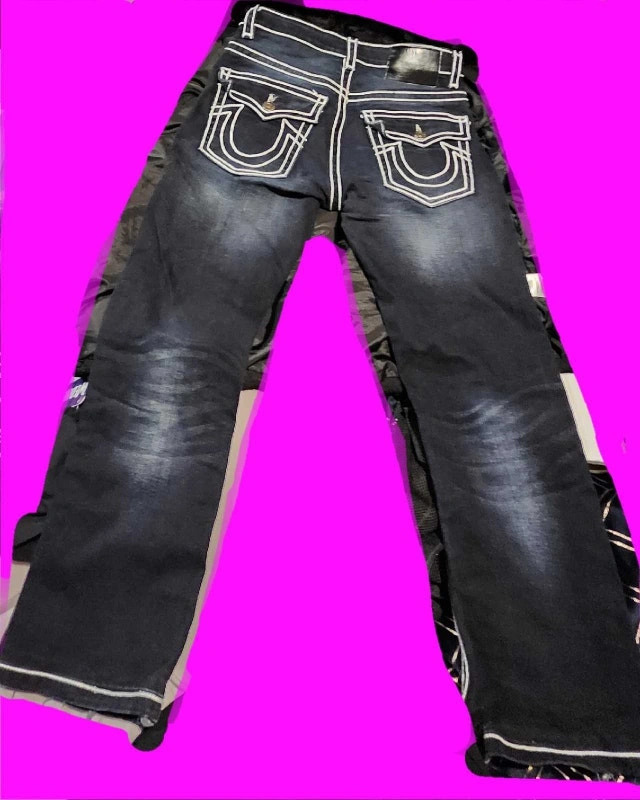 These True Religion jeans in a women's size 30 are a stylish addition to any wardrobe. The dark wash denim and signature white stitching give them a unique look. These jeans are in used once maybe twice but still new, but still have plenty of life left. Here are some additional details: