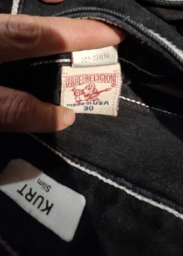 These True Religion jeans in a women's size 30 are a stylish addition to any wardrobe. The dark wash denim and signature white stitching give them a unique look. These jeans are in used once maybe twice but still new, but still have plenty of life left. Here are some additional details:
