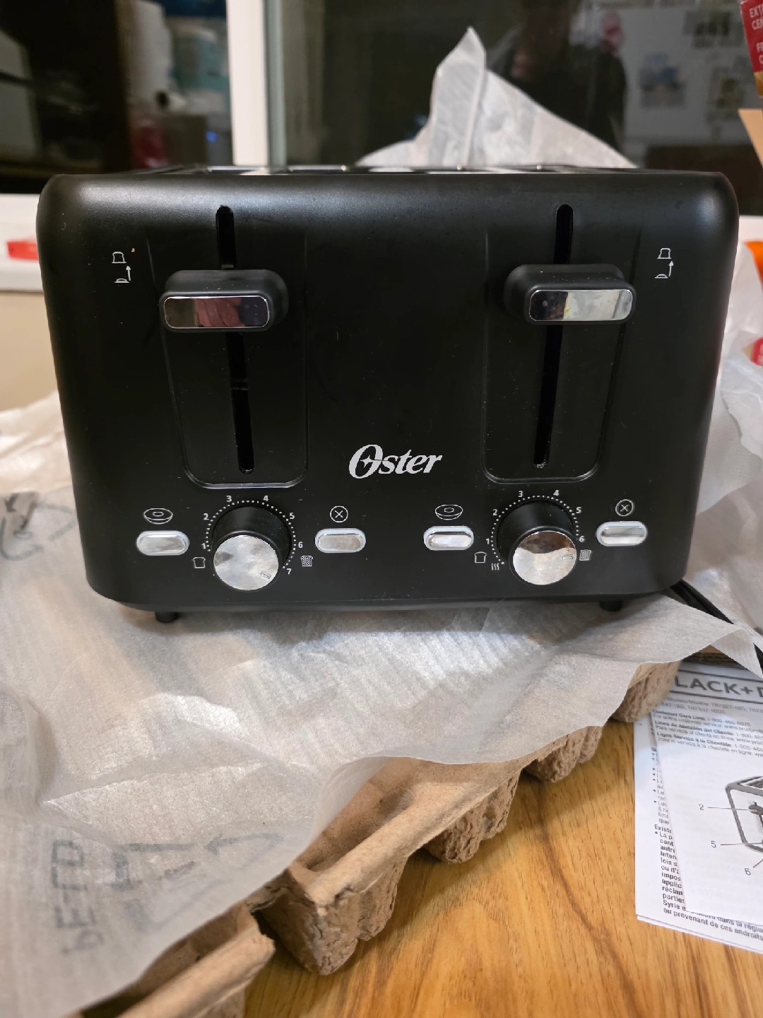 Selling a black Oster 4-slice toaster. It's in great condition and ready to toast your favourite breads and pastries. Perfect for a family or anyone who loves toast!..only couple weeks old..meet in Abbotsford