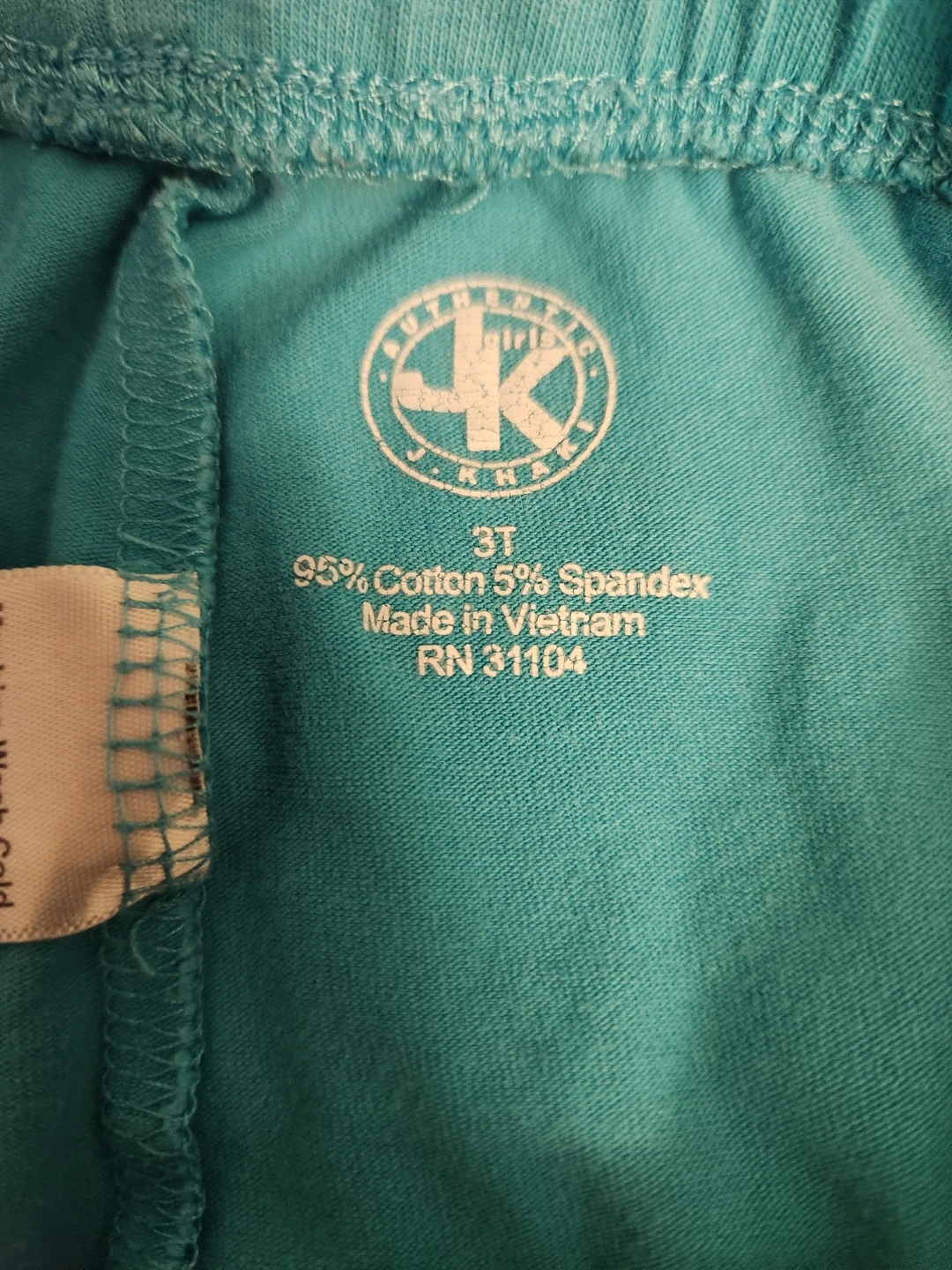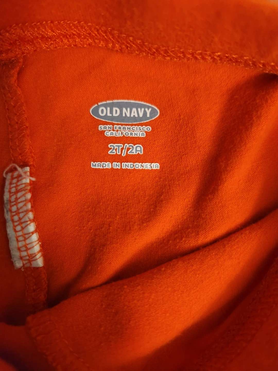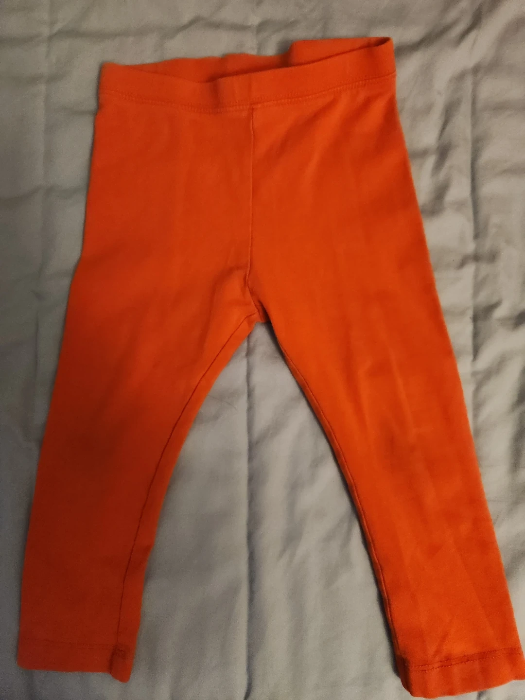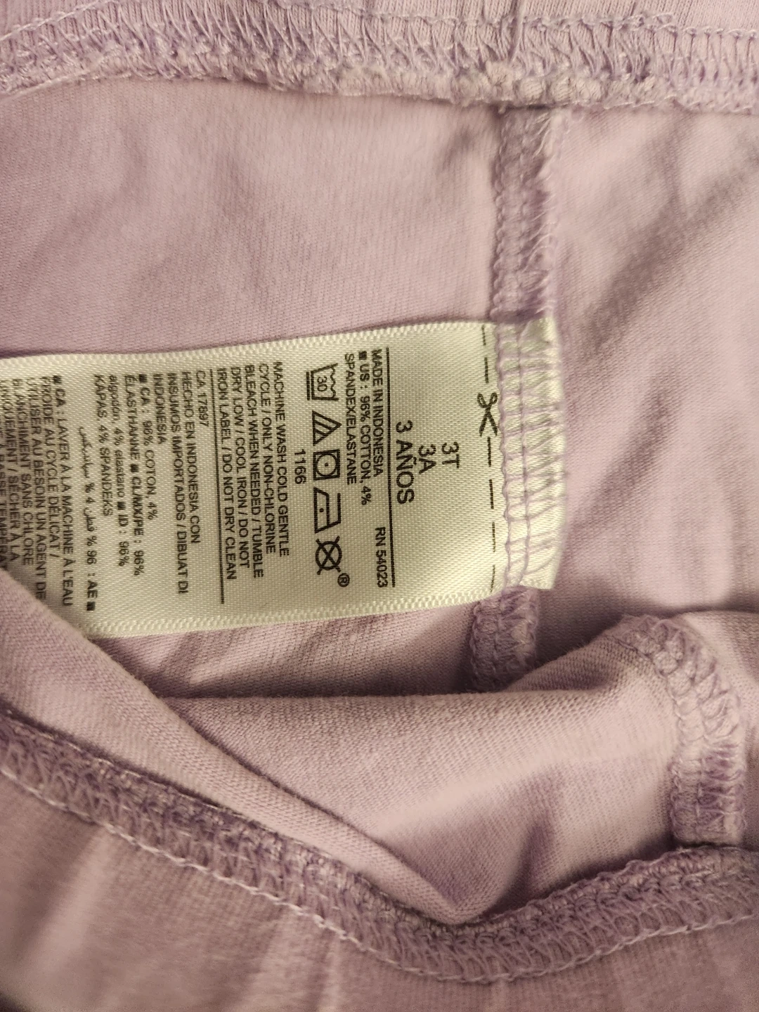 Bundle of five pairs of kids' leggings in size 3T and 2T. Includes one floral print pair from Old Navy and four solid coloured pairs.